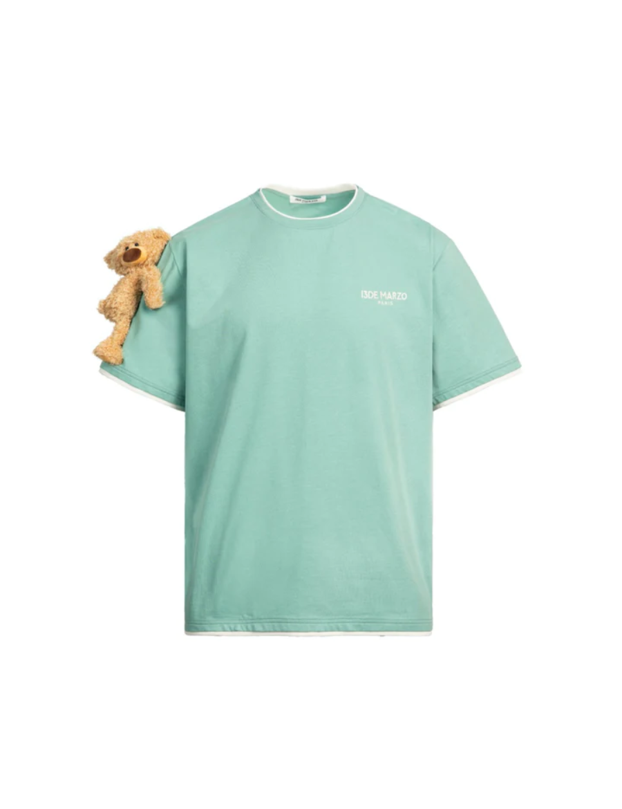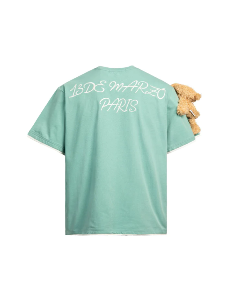 13DE MARZO Short Sleeve Plush Bear Tee Green