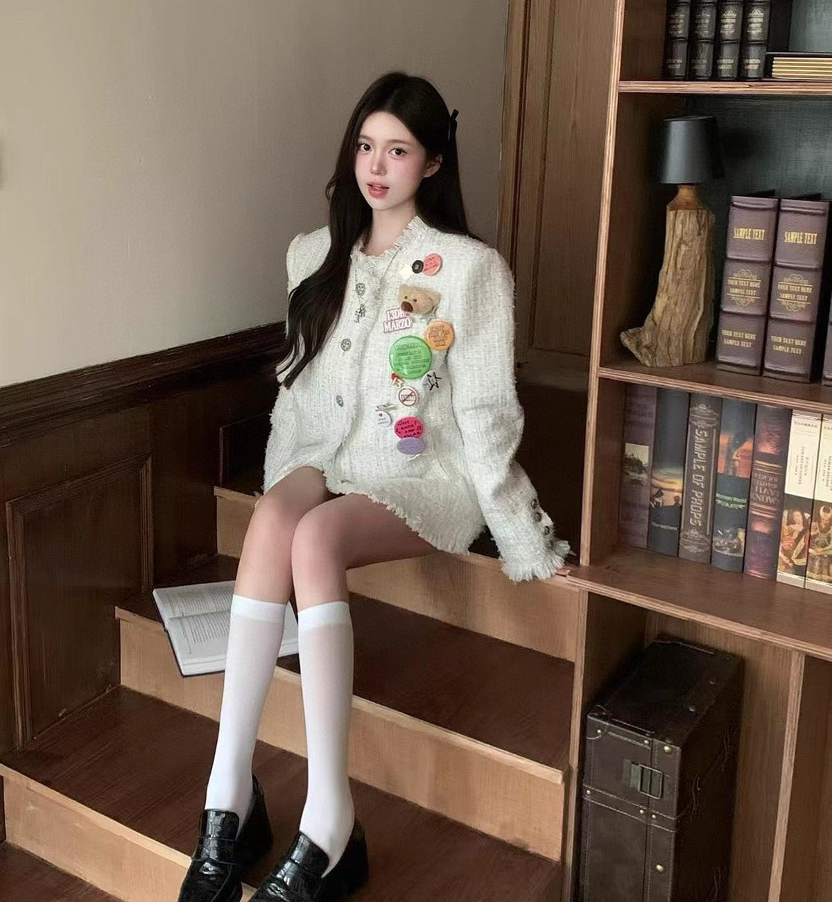 13DE MARZO Badge Vintage Chunky Wool Jacket (White)