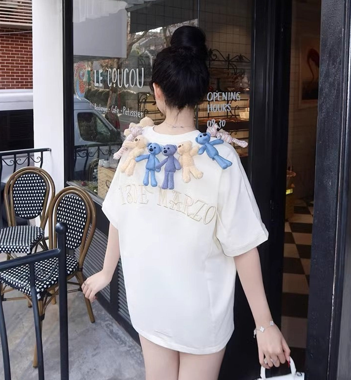 13DE MARZO Bear Around Neck T-Shirt (Cream)