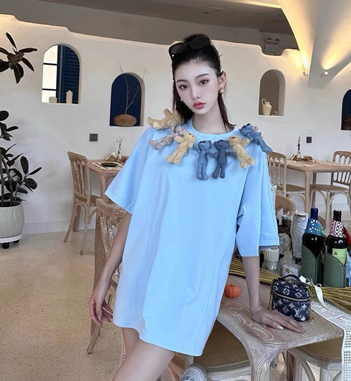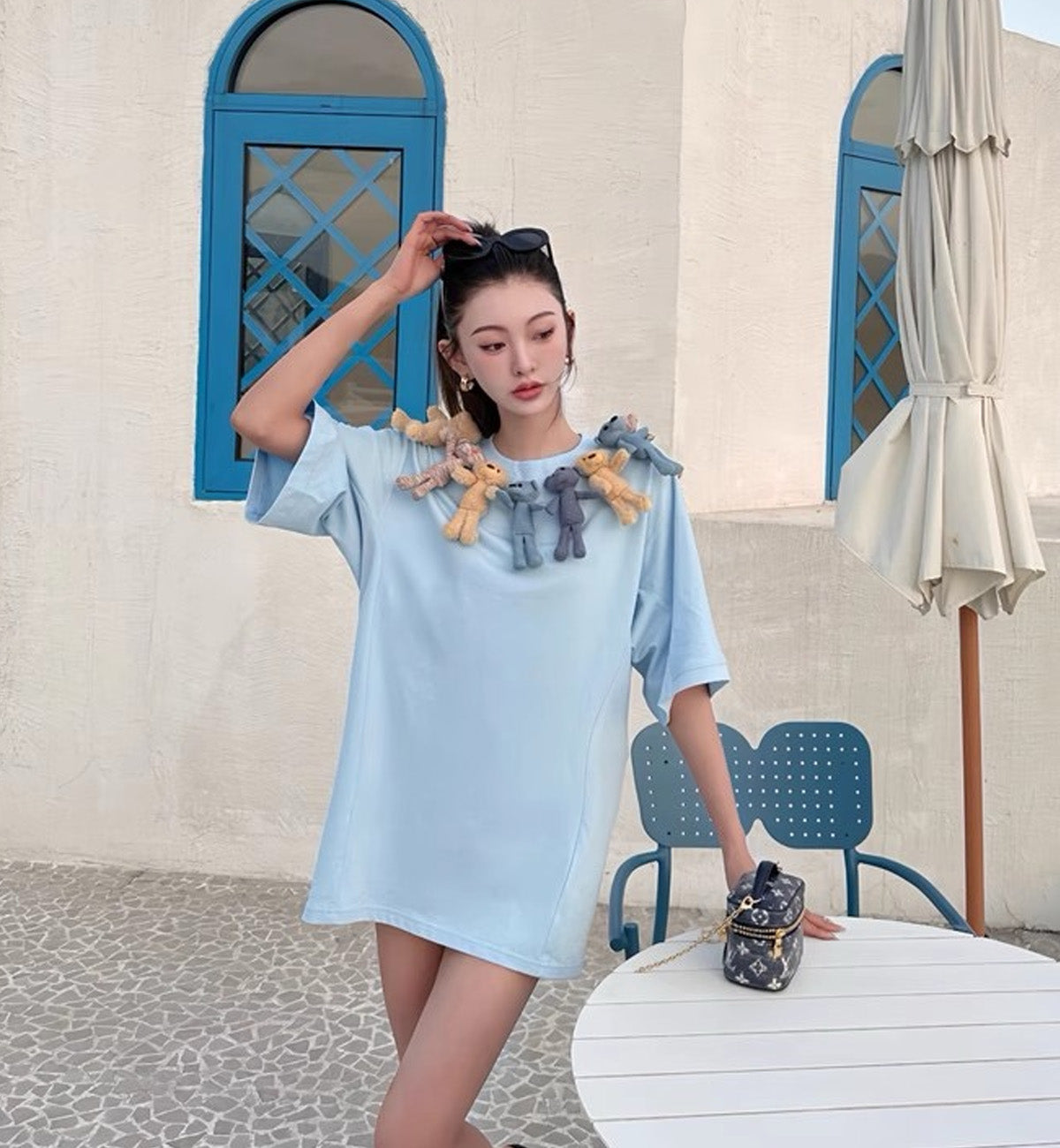13DE MARZO Bear Around Neck T-Shirt (Cyan)