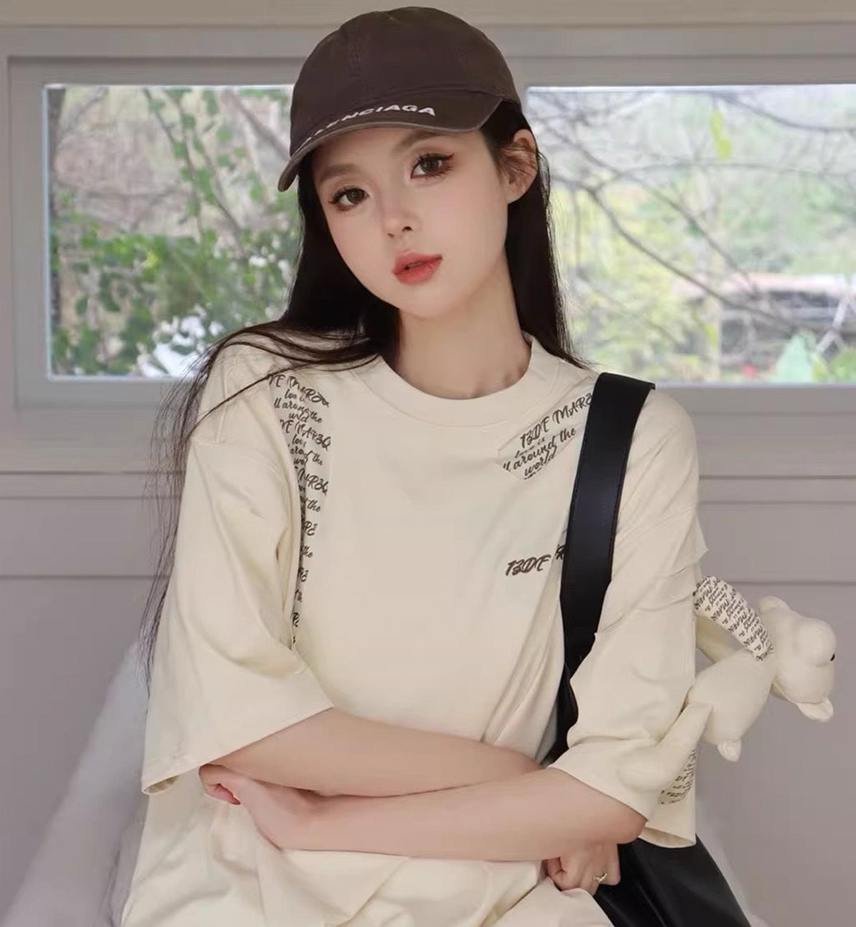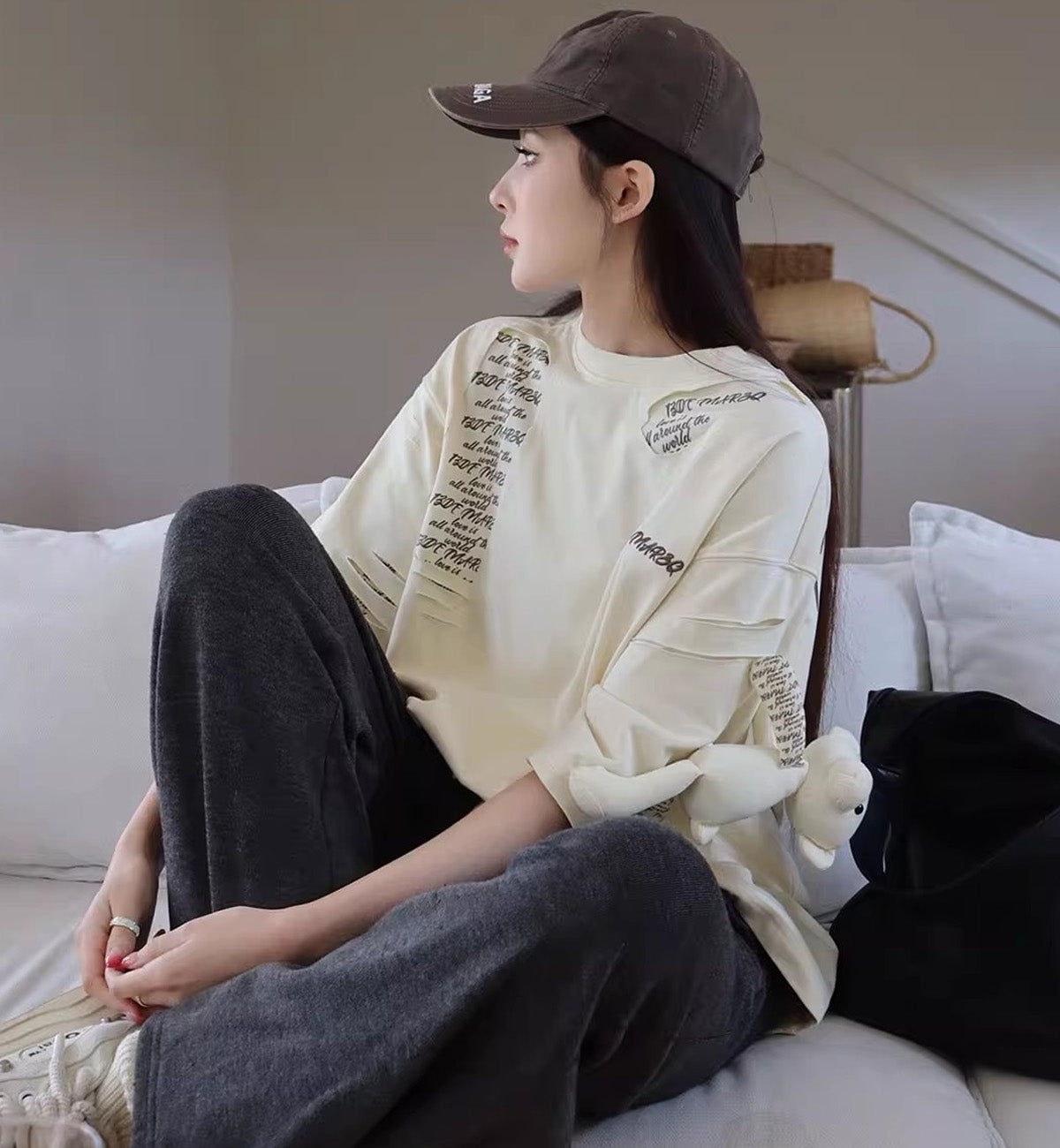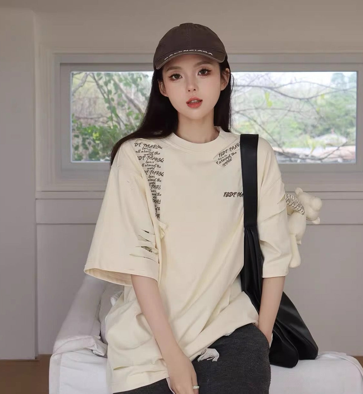 13DE MARZO Doll Destruction Stitching T-Shirt (Cream)