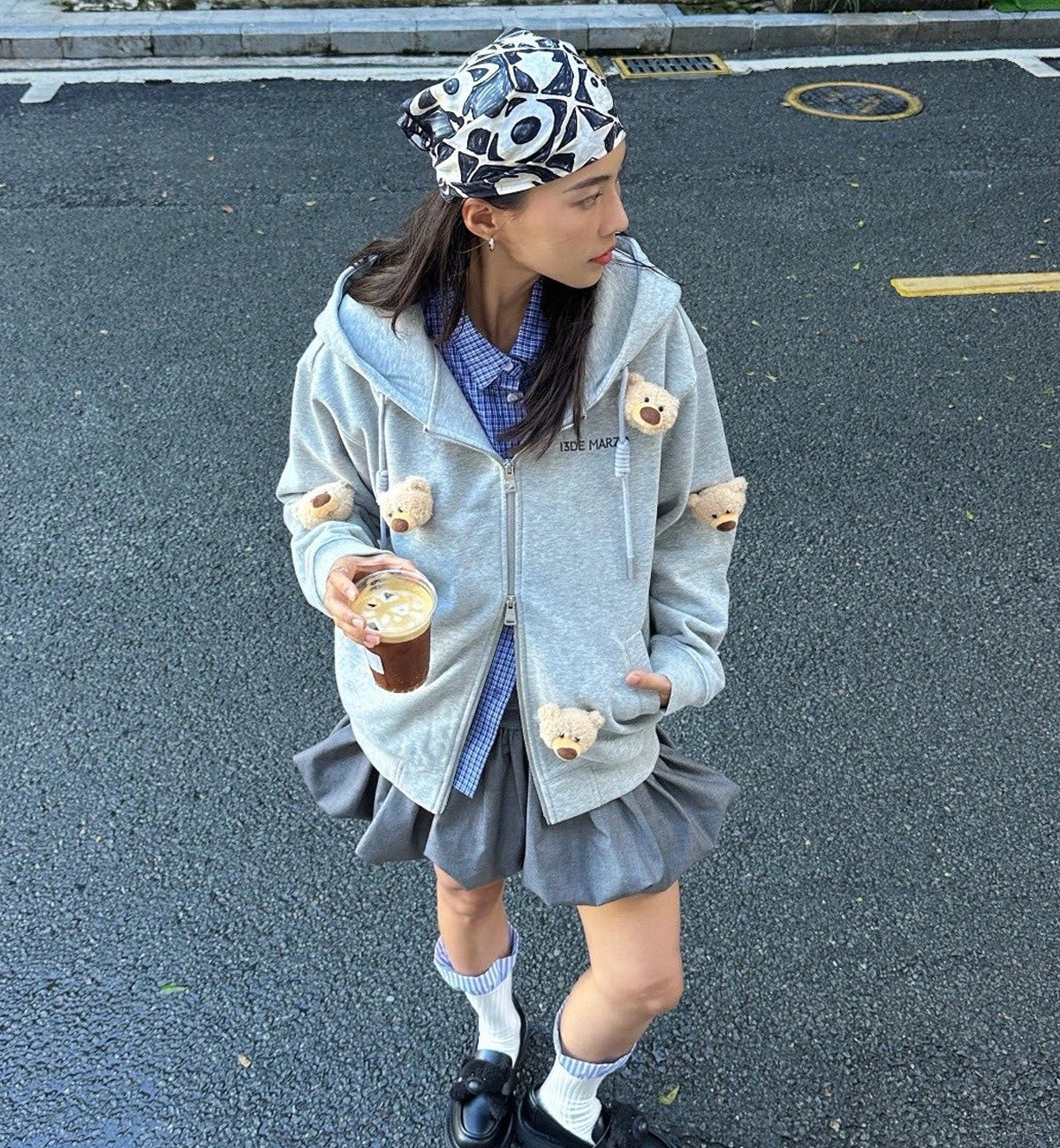 13DE MARZO Doozoo Full Zipper Hoodie (Grey)