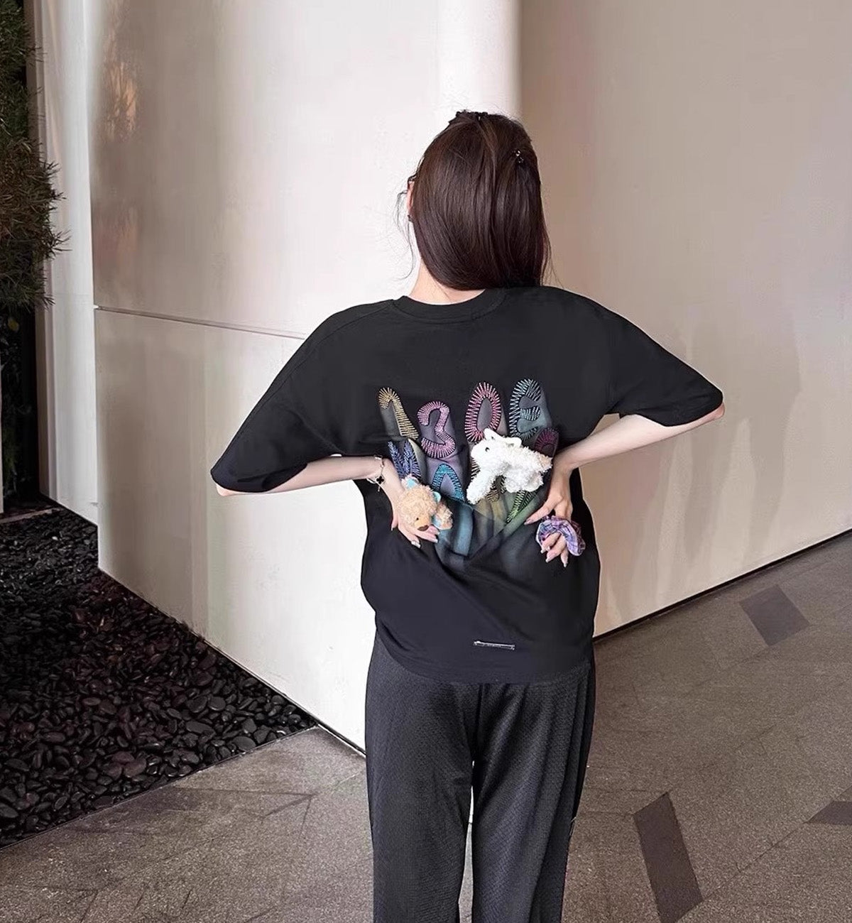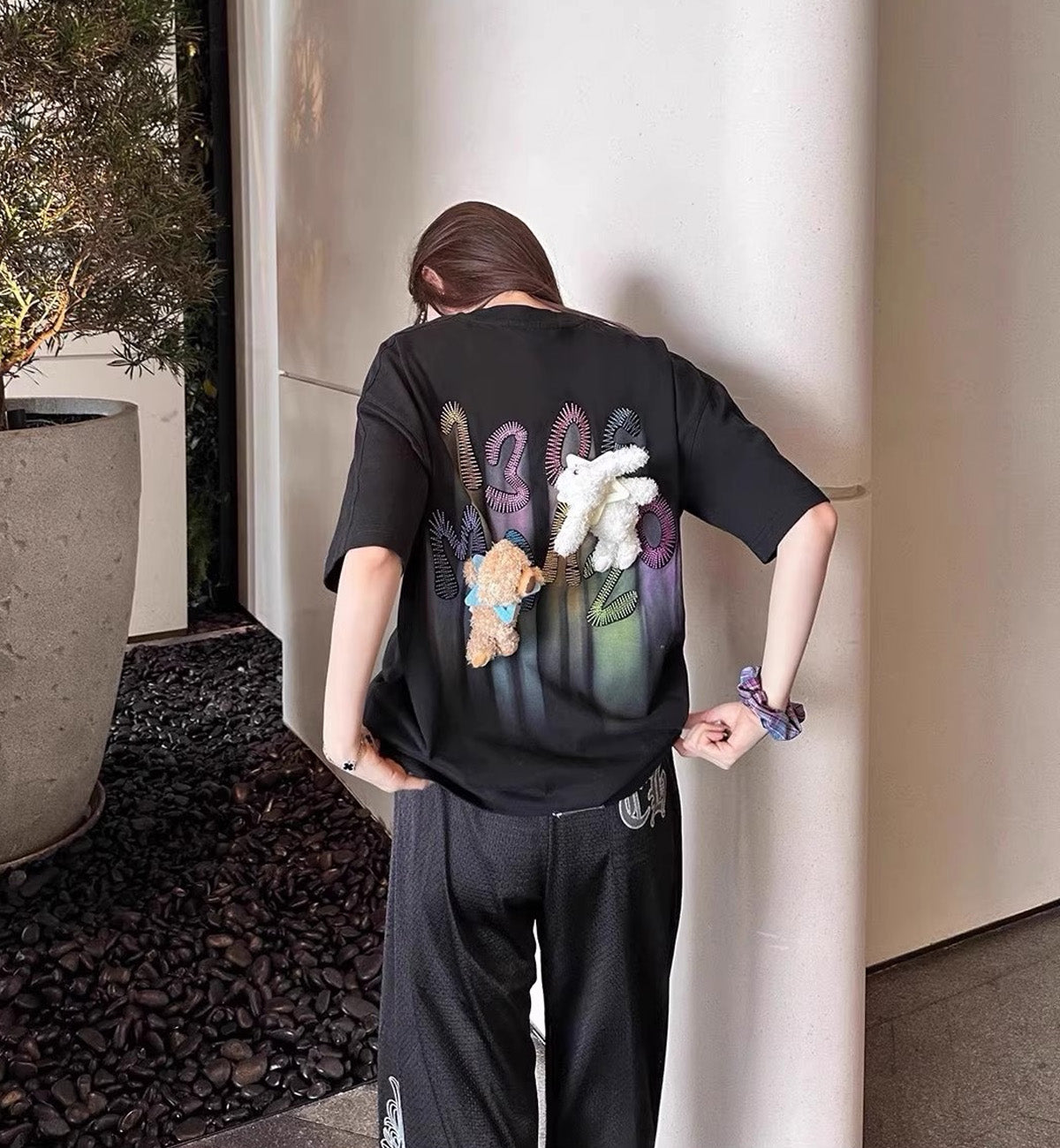 13DE MARZO Doozoo Hollow Colored Logo Bear T-Shirt (Black)