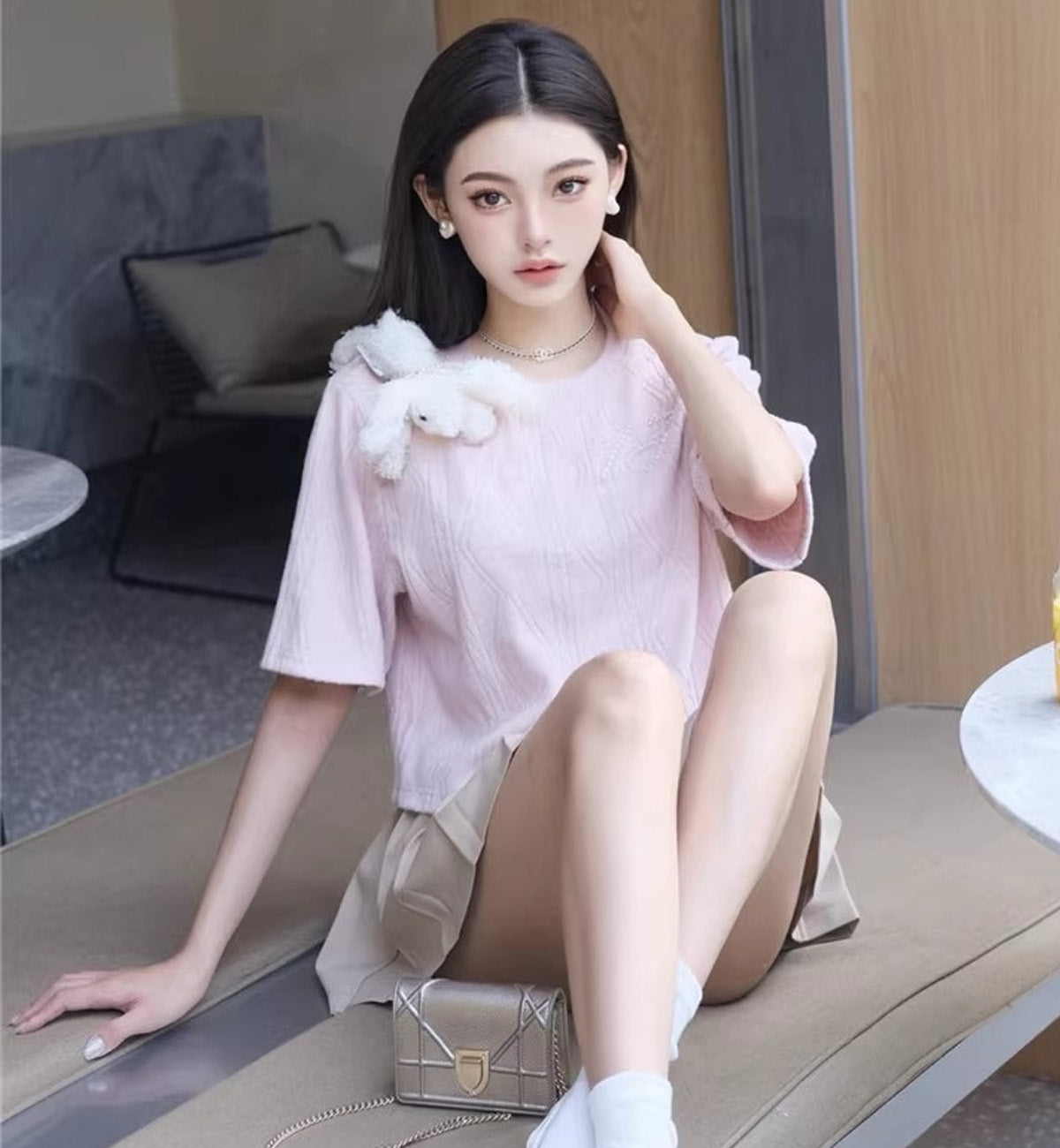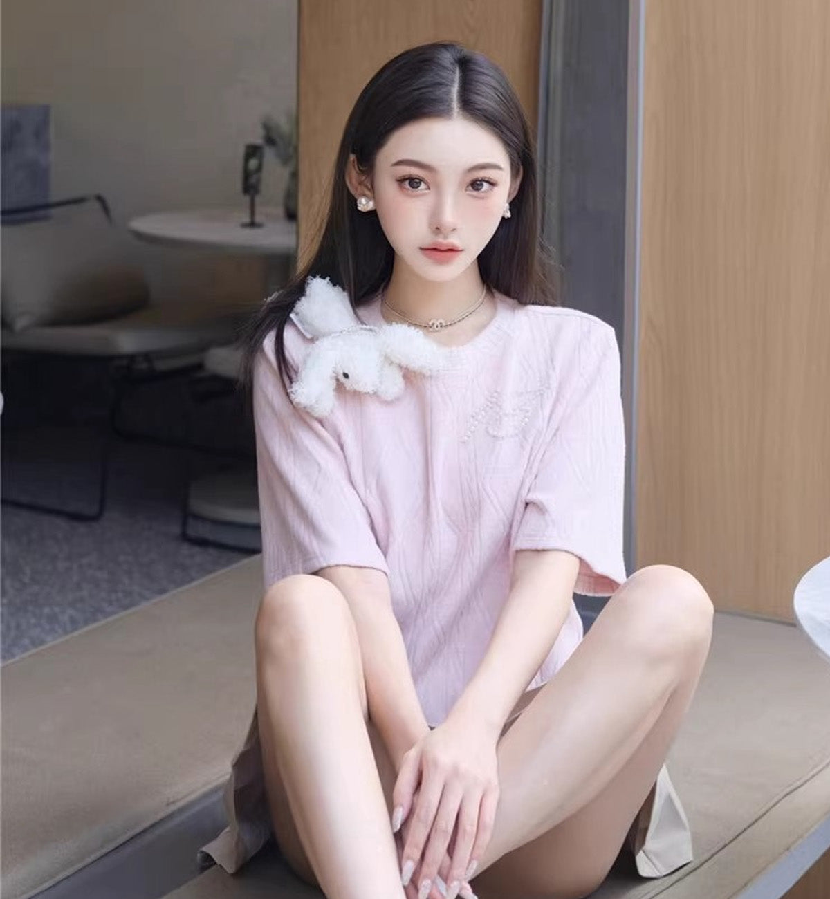 13DE MARZO Doozoo Towel Pearl T-Shirt (Pink)