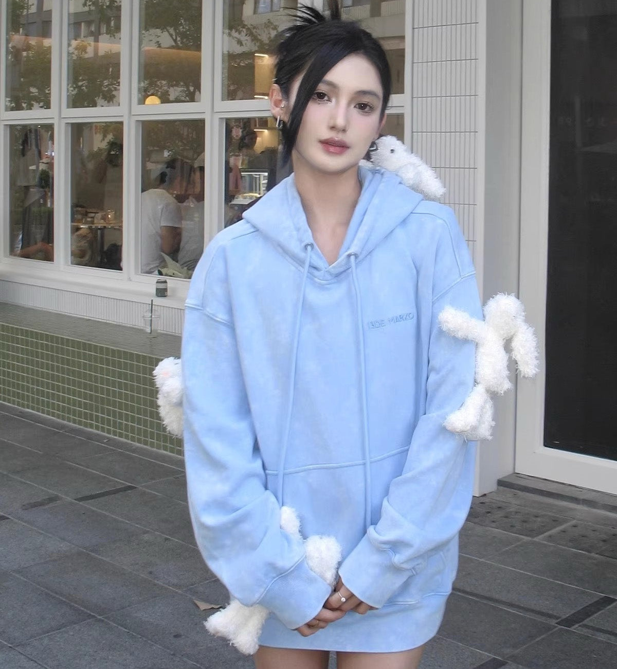 13DE MARZO Doozoo Washed Faded Hoodie (Cyan)