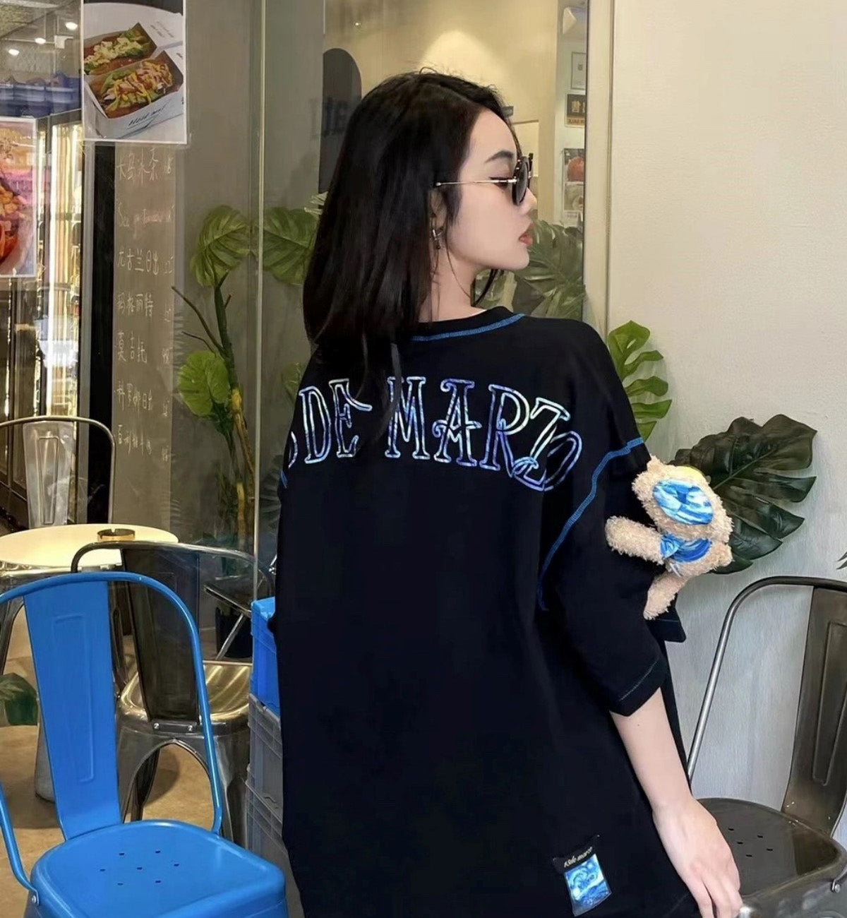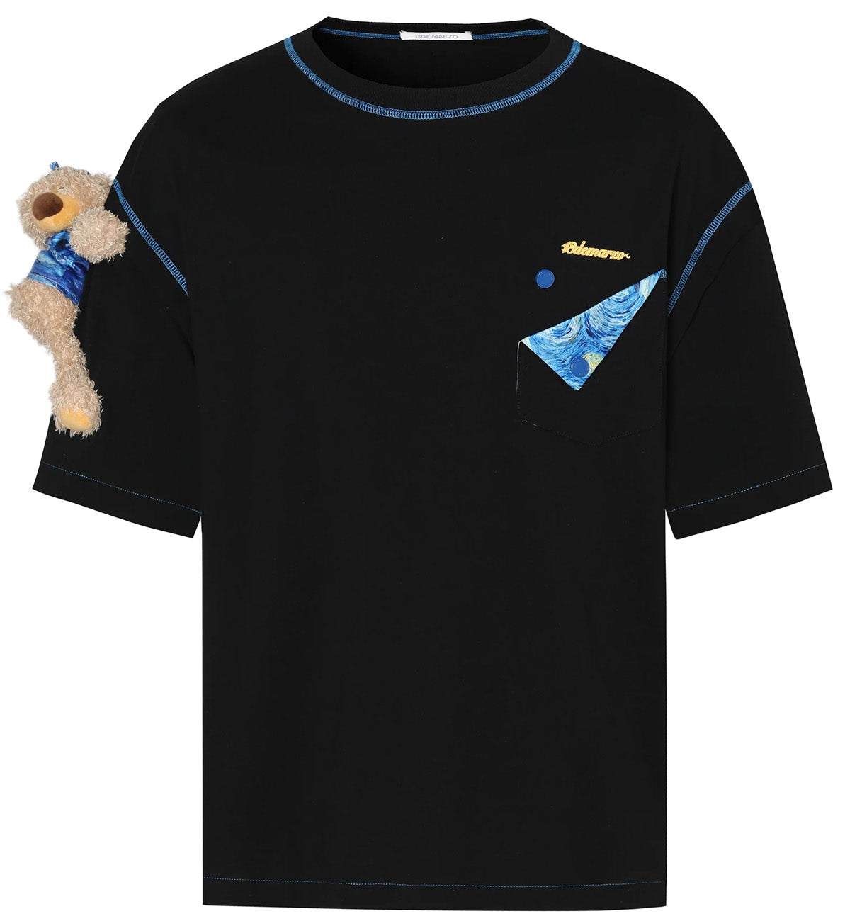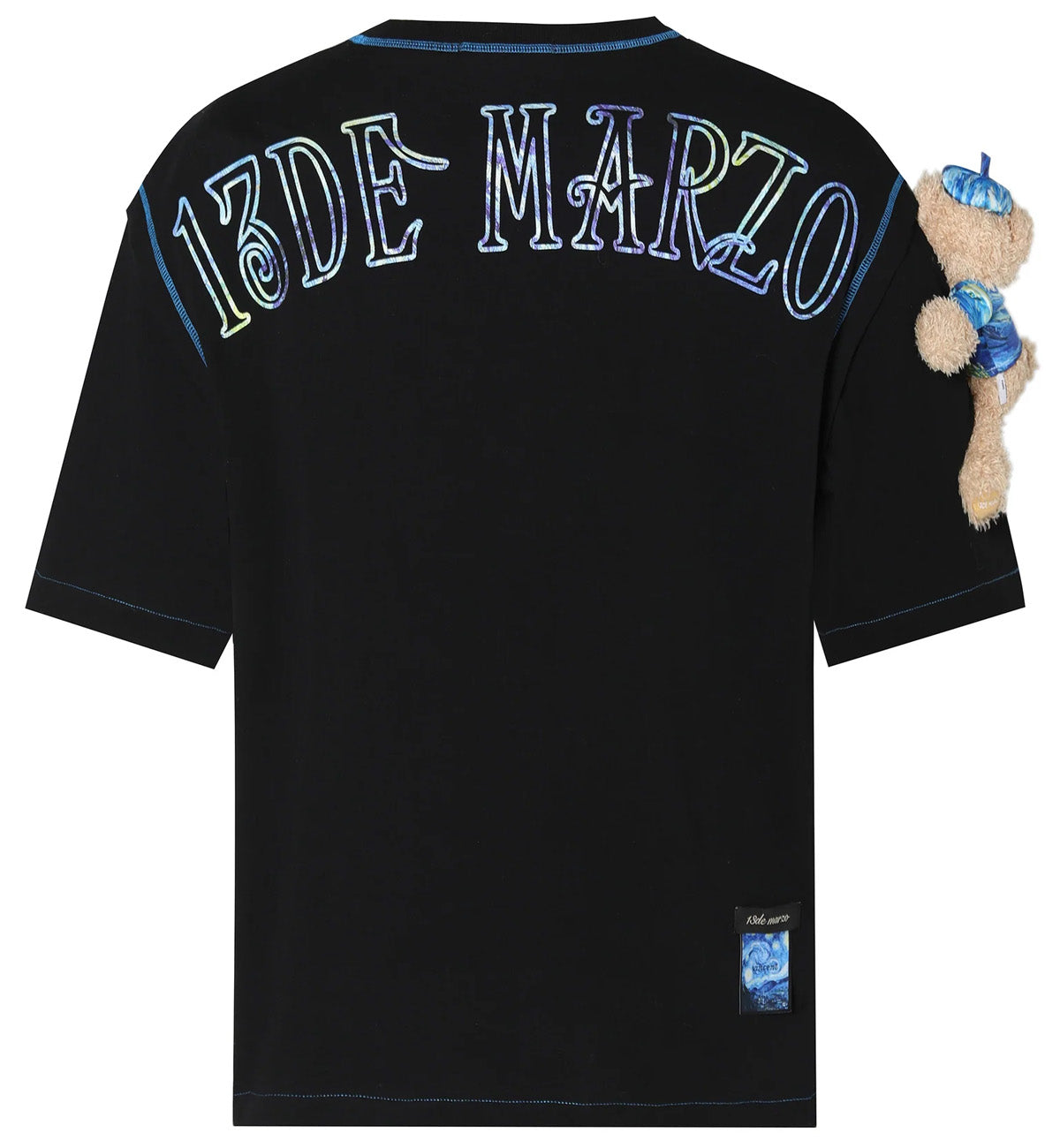 13DE MARZO Shoulder Palda Bear Van Gogh T-Shirt (Black)