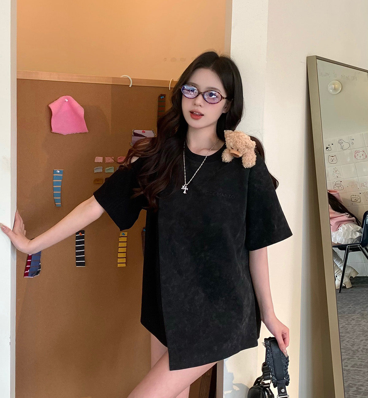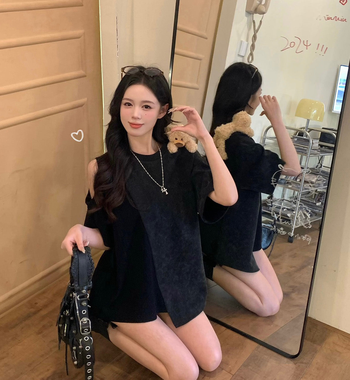 13DE MARZO Unmatched Off Shoulder T-Shirt (Black)