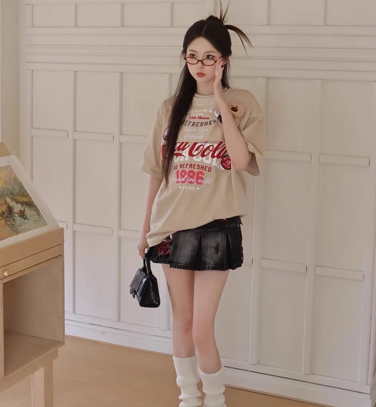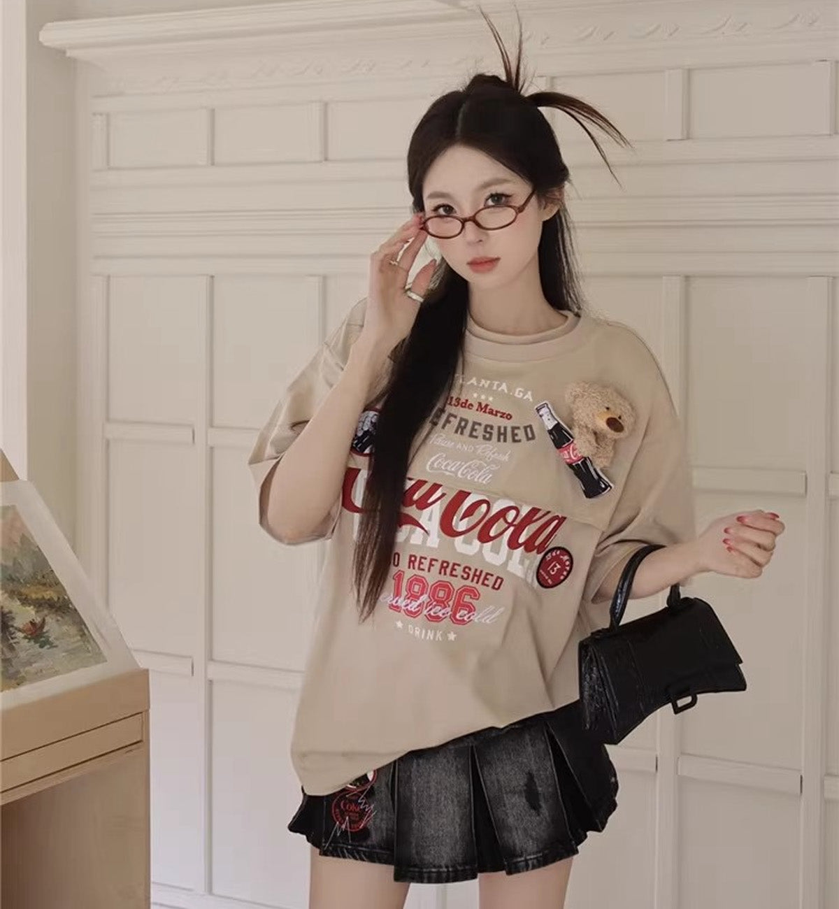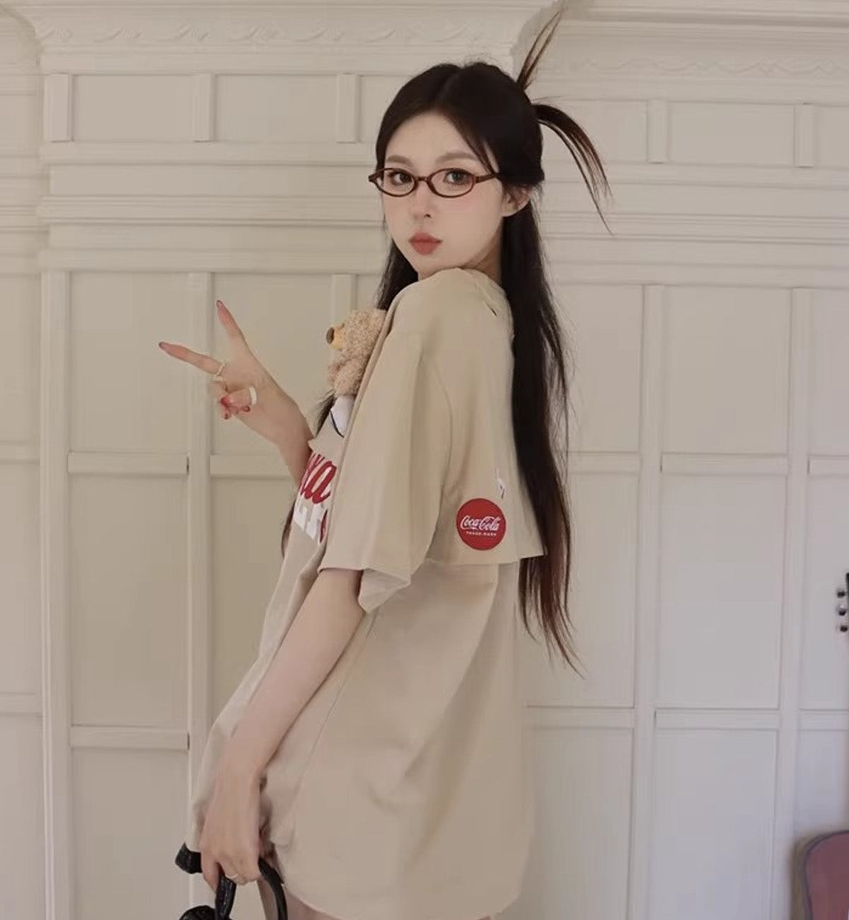 13DE MARZO x Coca-Cola Bear Layered Logo T-Shirt (Beige)