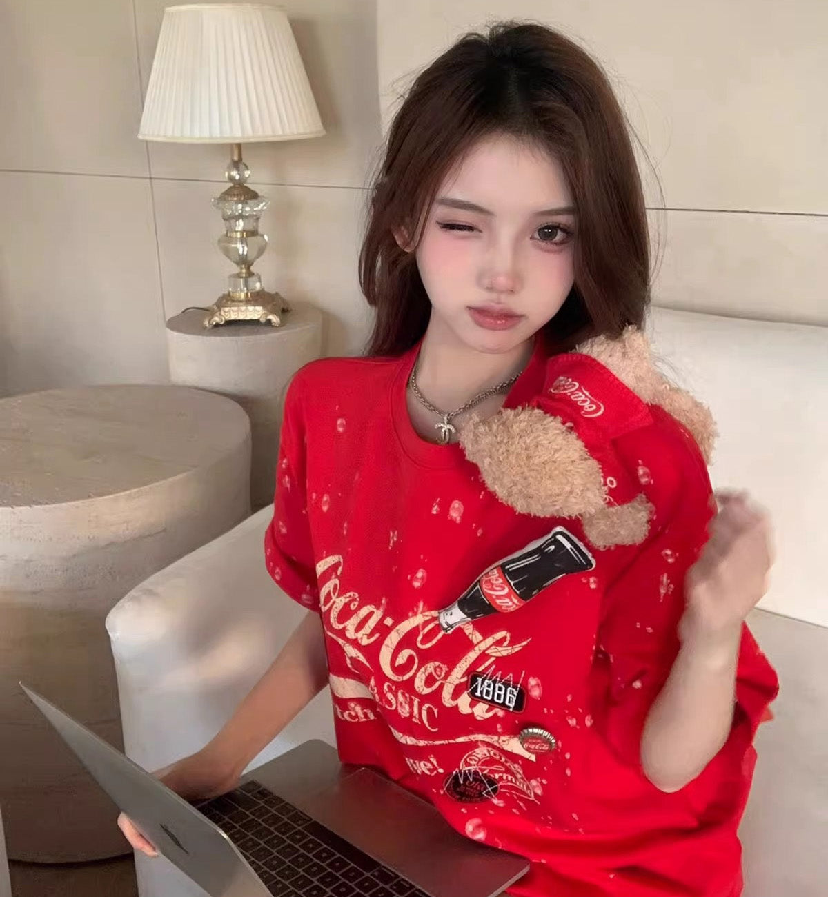 13DE MARZO x Coca-Cola Bear Water Drop T-Shirt (Red)