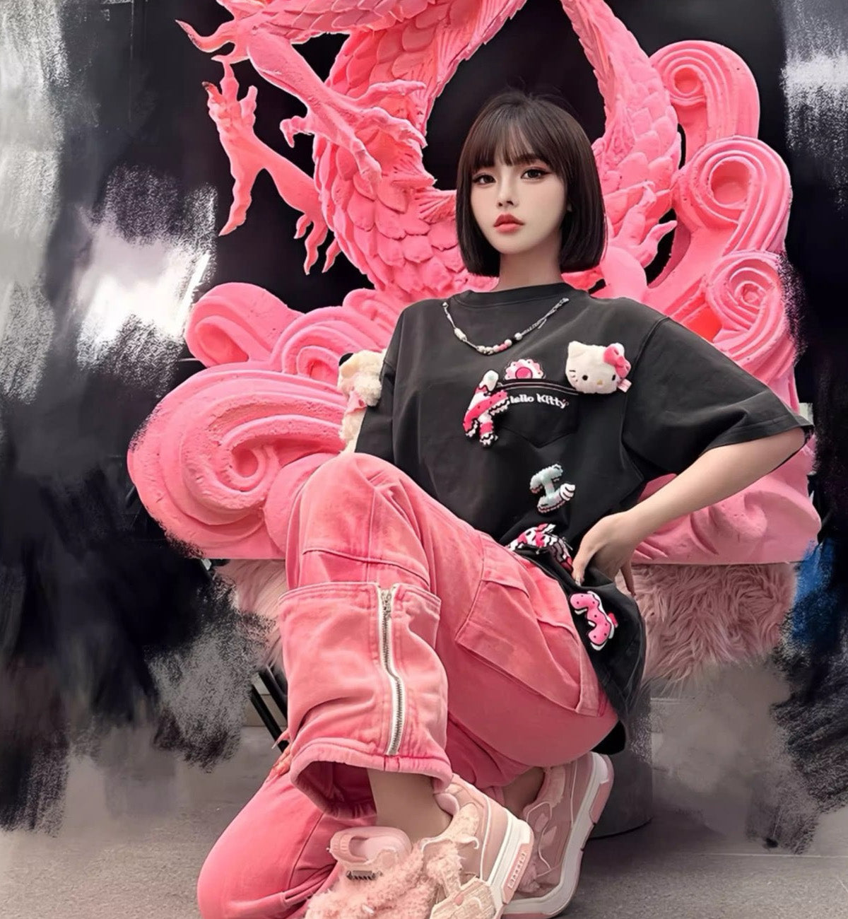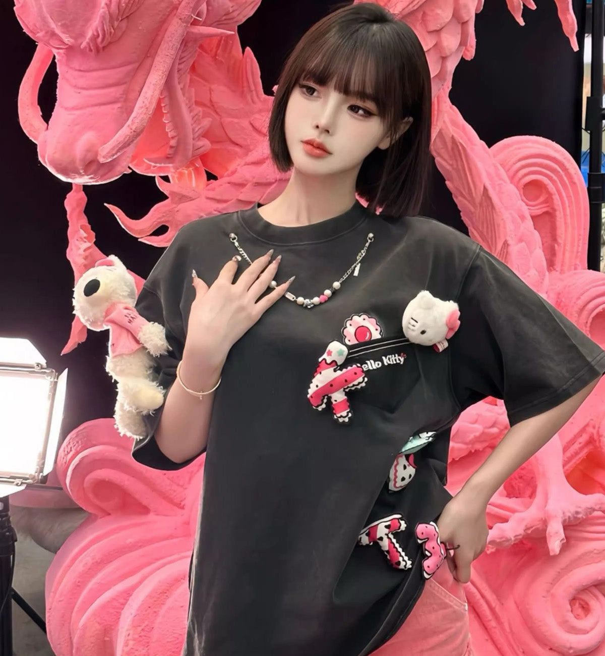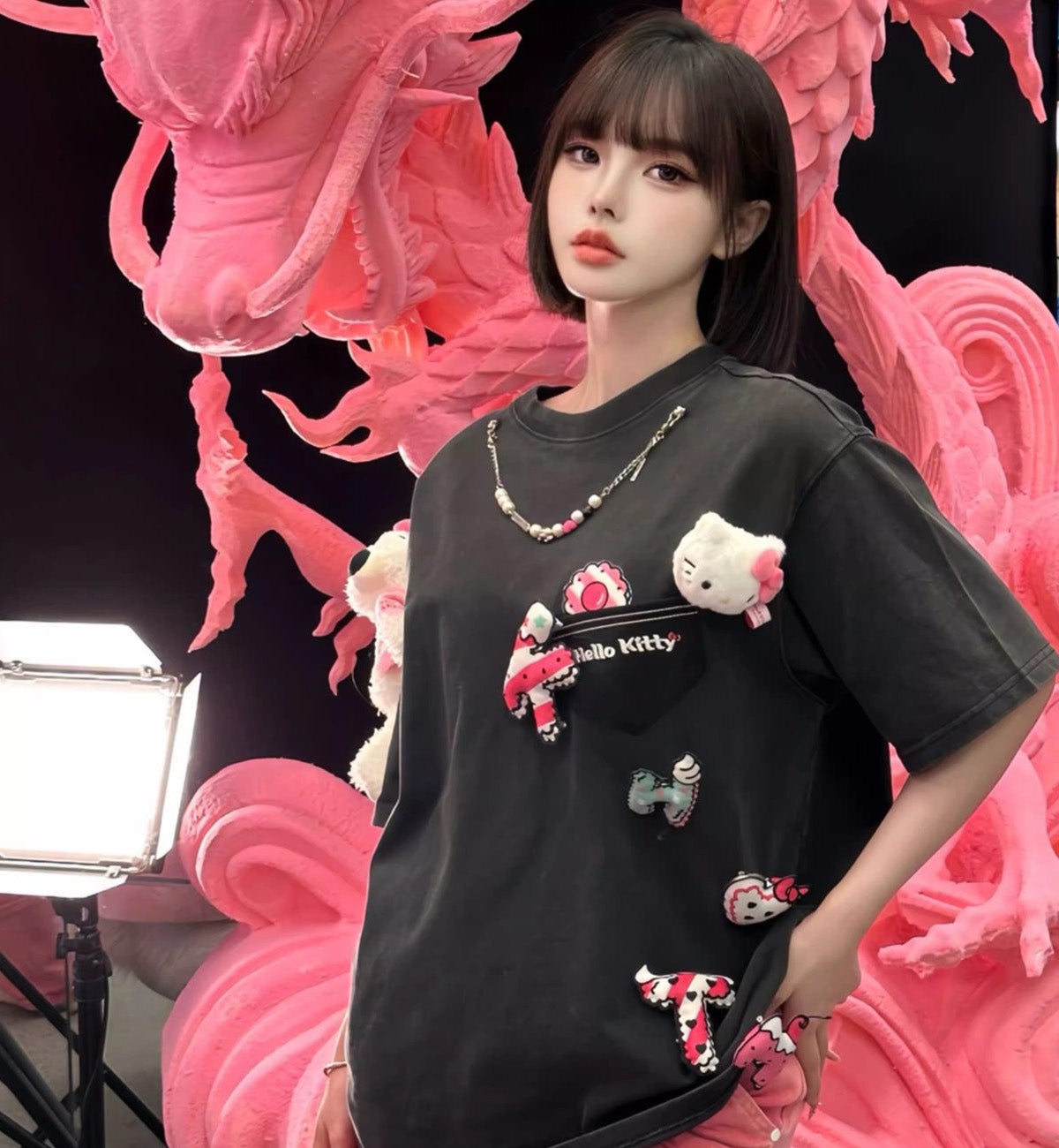 13DE MARZO x Hello Kitty Plush Cake Letter T-Shirt (Black)