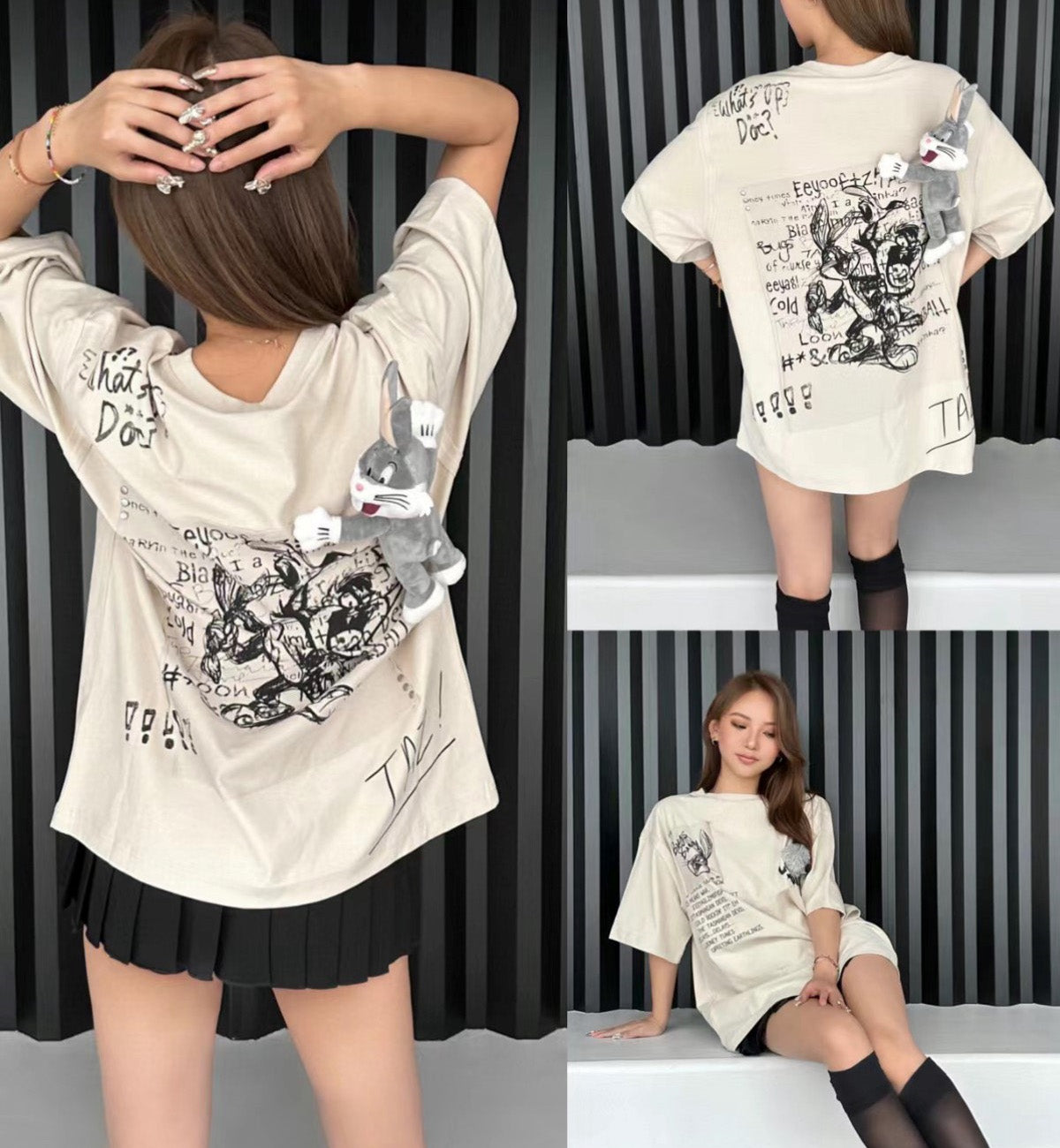 13DE MARZO x LOONEY TUNES Bugs Bunny Sketch T-Shirt (Beige)