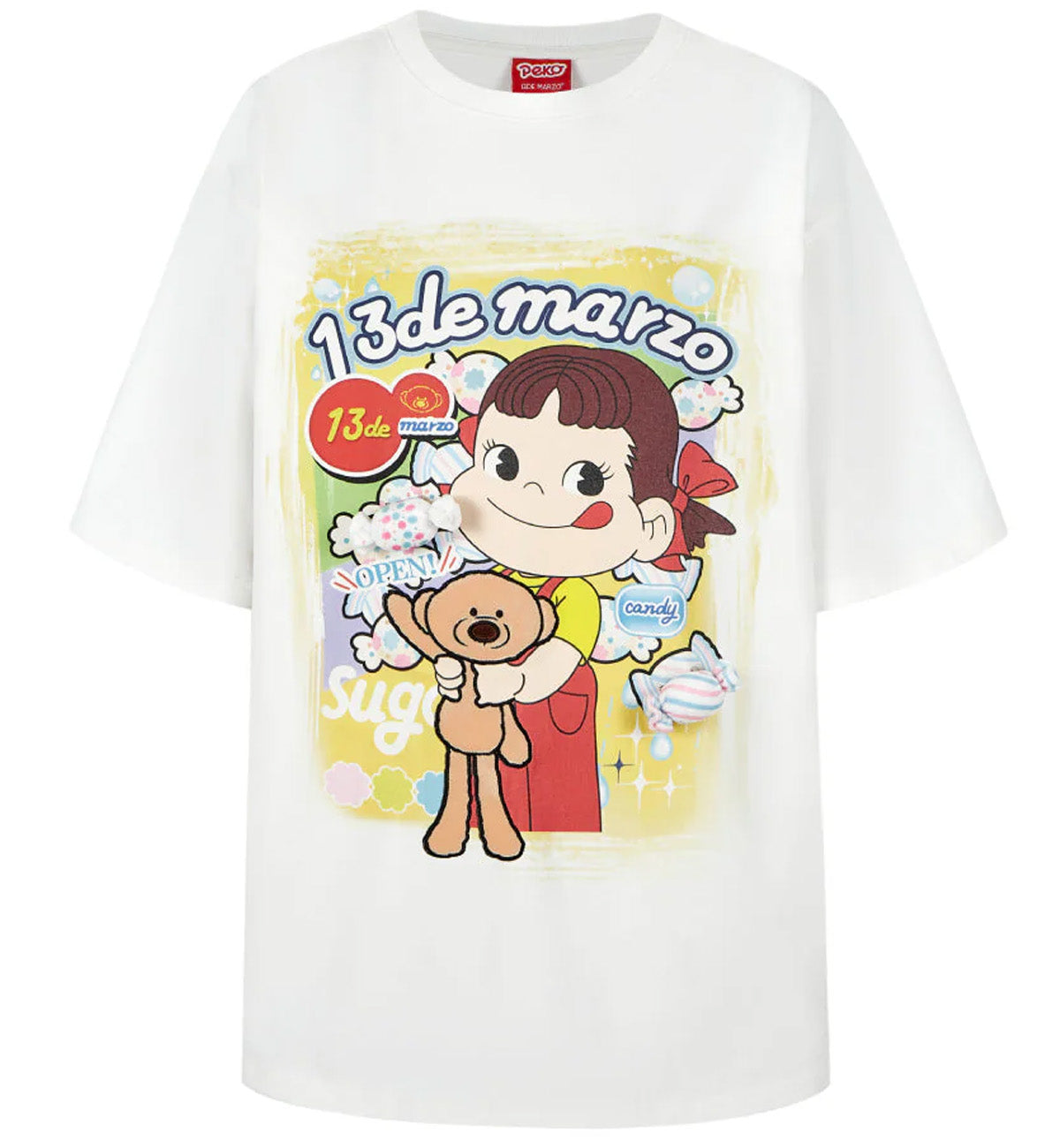 13DE MARZO X Peko Sweets Bear Washed T-Shirt (White)