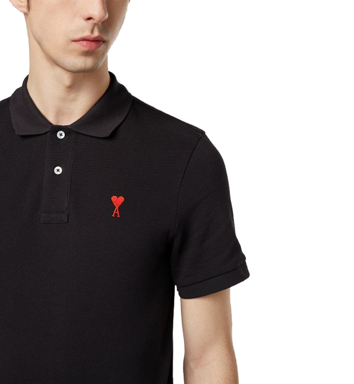 AMI captures a particular type of the French capital's nonchalance, one that is relaxed, authentic and friendly. This navy cotton classic polo shirt features a classic polo collar, a contrast red embroidered logo to the front, short sleeves, ribbed cuffs and a straight hem.