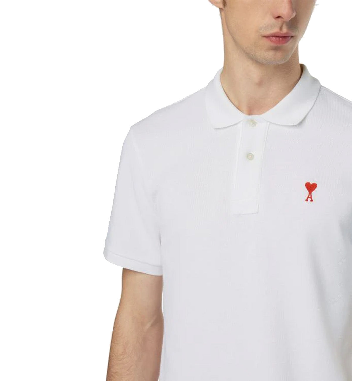AMI captures a particular type of the French capital's nonchalance, one that is relaxed, authentic and friendly. This navy cotton classic polo shirt features a classic polo collar, a contrast red embroidered logo to the front, short sleeves, ribbed cuffs and a straight hem.