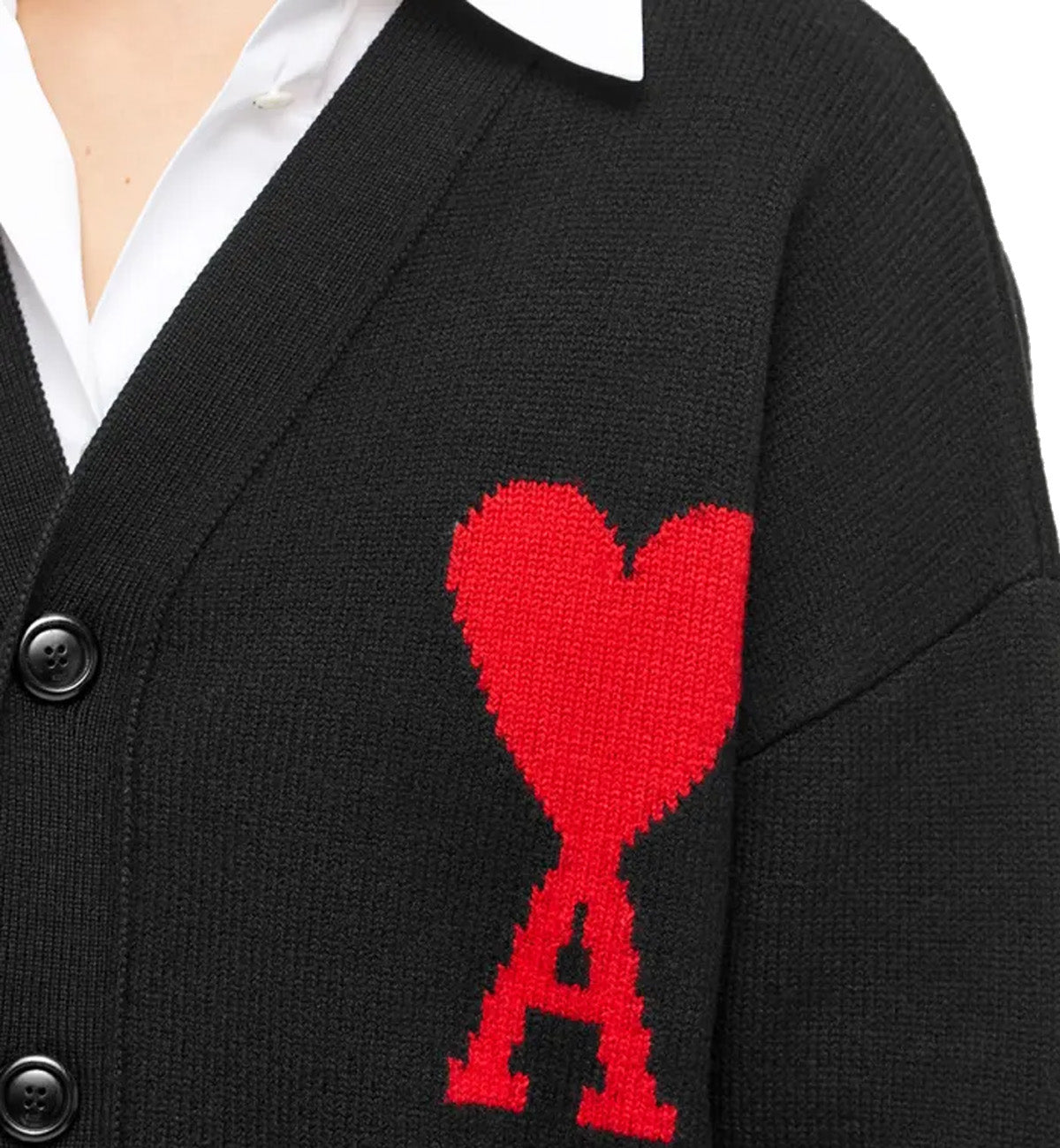 Indulge in the intersection of elegance and comfort with the Ami Paris Cardigan Button Jacket in Black. Elevate your wardrobe with this essential piece that captures the essence of Parisian fashion. Order yours today and experience the fusion of sophistication and coziness that defines AMI's knitwear expertise.