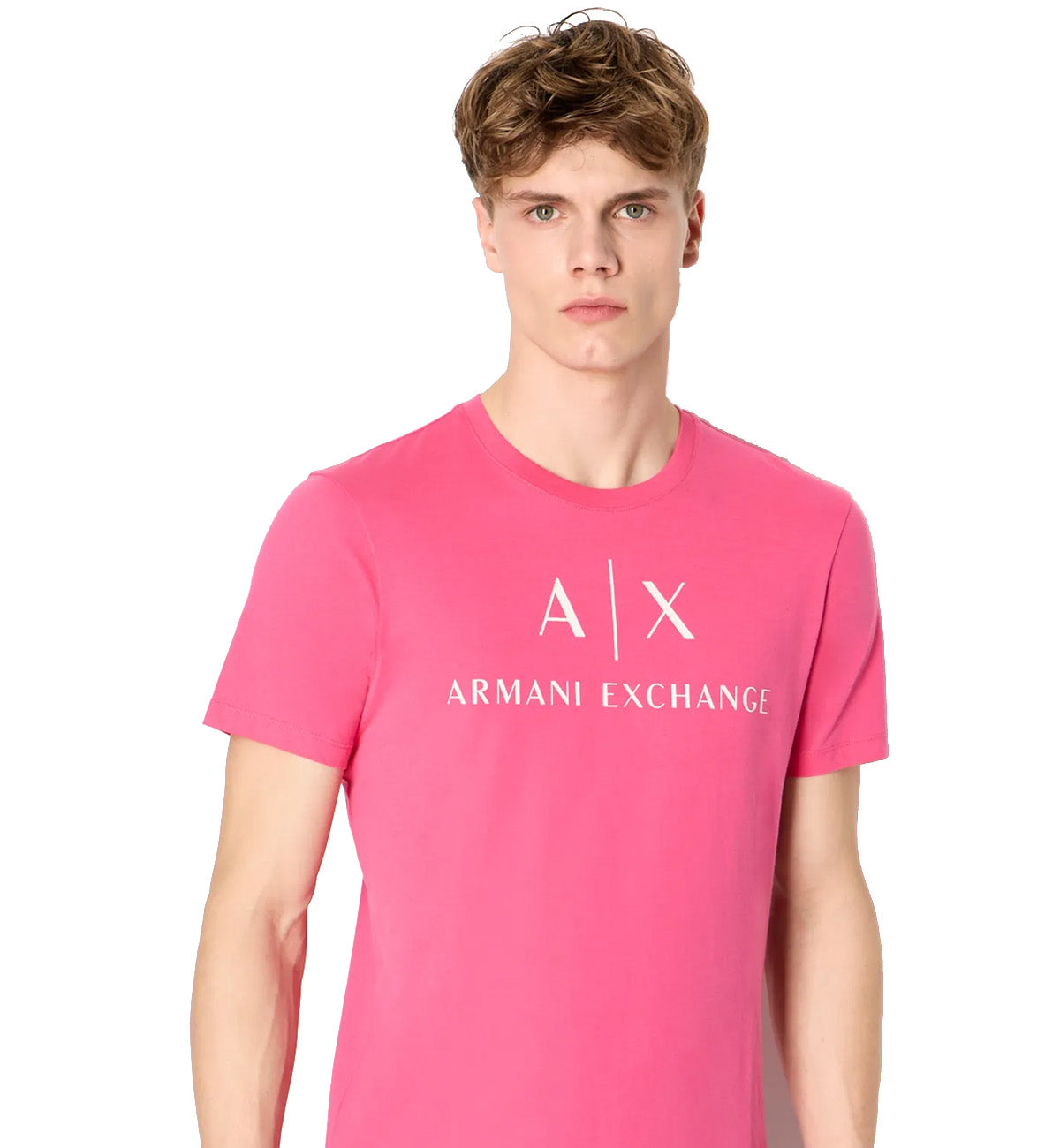 The prominent Armani Exchange Center Logo adds a touch of sophistication and brand recognition to this tee, capturing the essence of contemporary urban fashion with a sleek twist. Do not miss the opportunity to own this iconic piece. Elevate your wardrobe today with the Armani Exchange Slim Fit Center Logo Pink Tee.