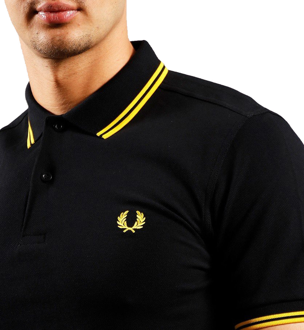 Fred Perry Yellow Double Stripe Black Polo Shirt
