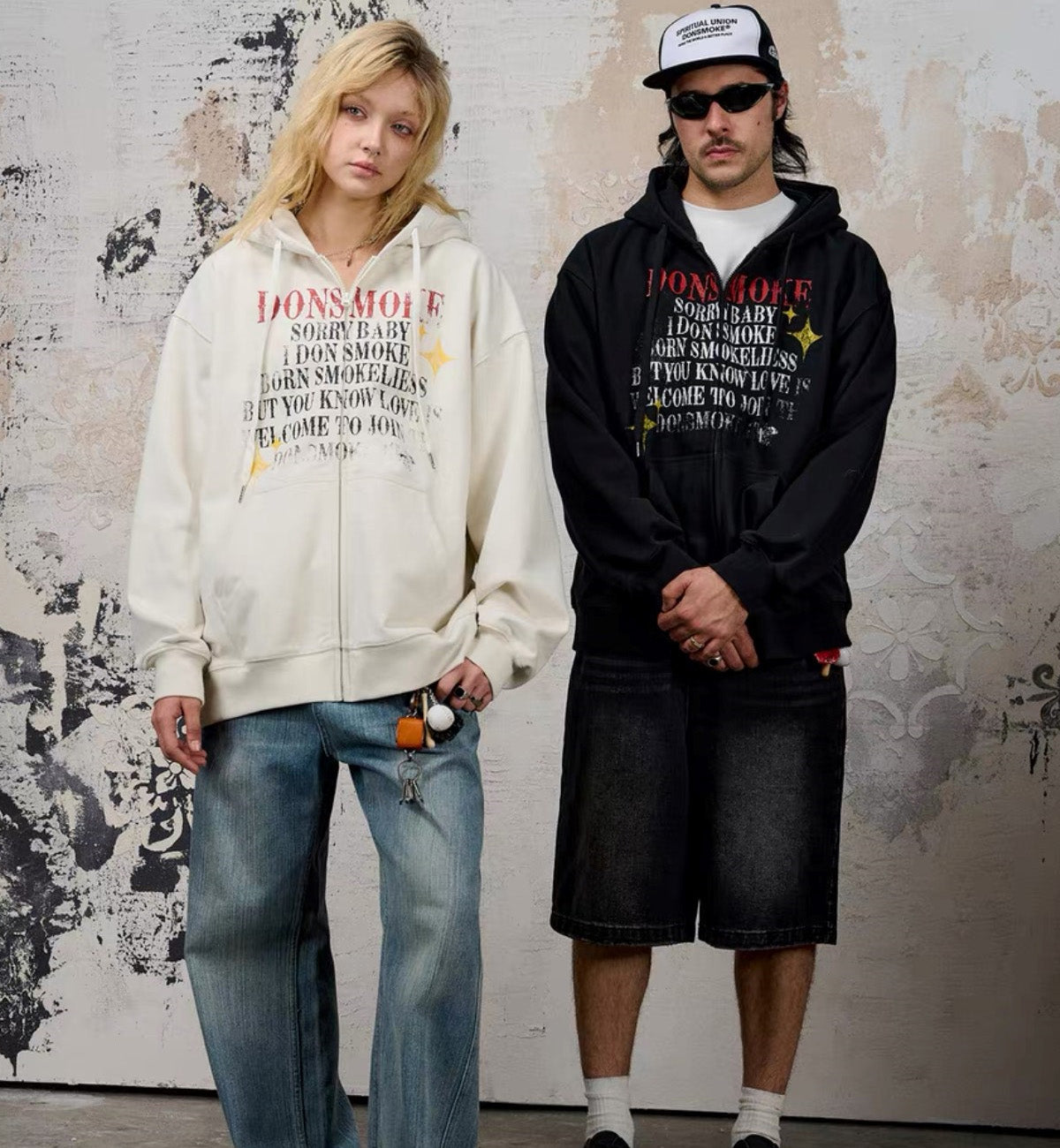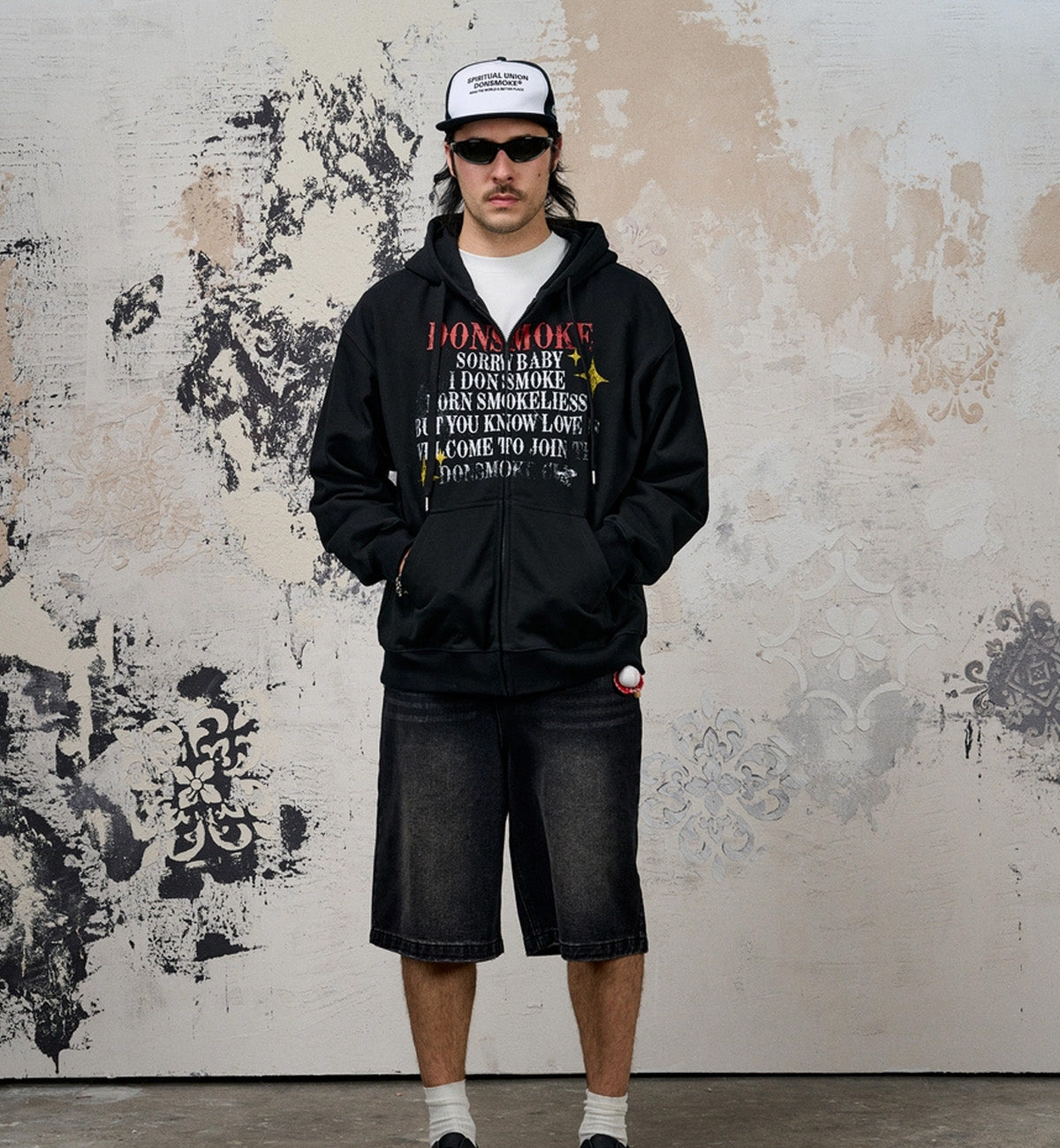 I Don't Smoke Letter Fade Zip Hoodie (Black)