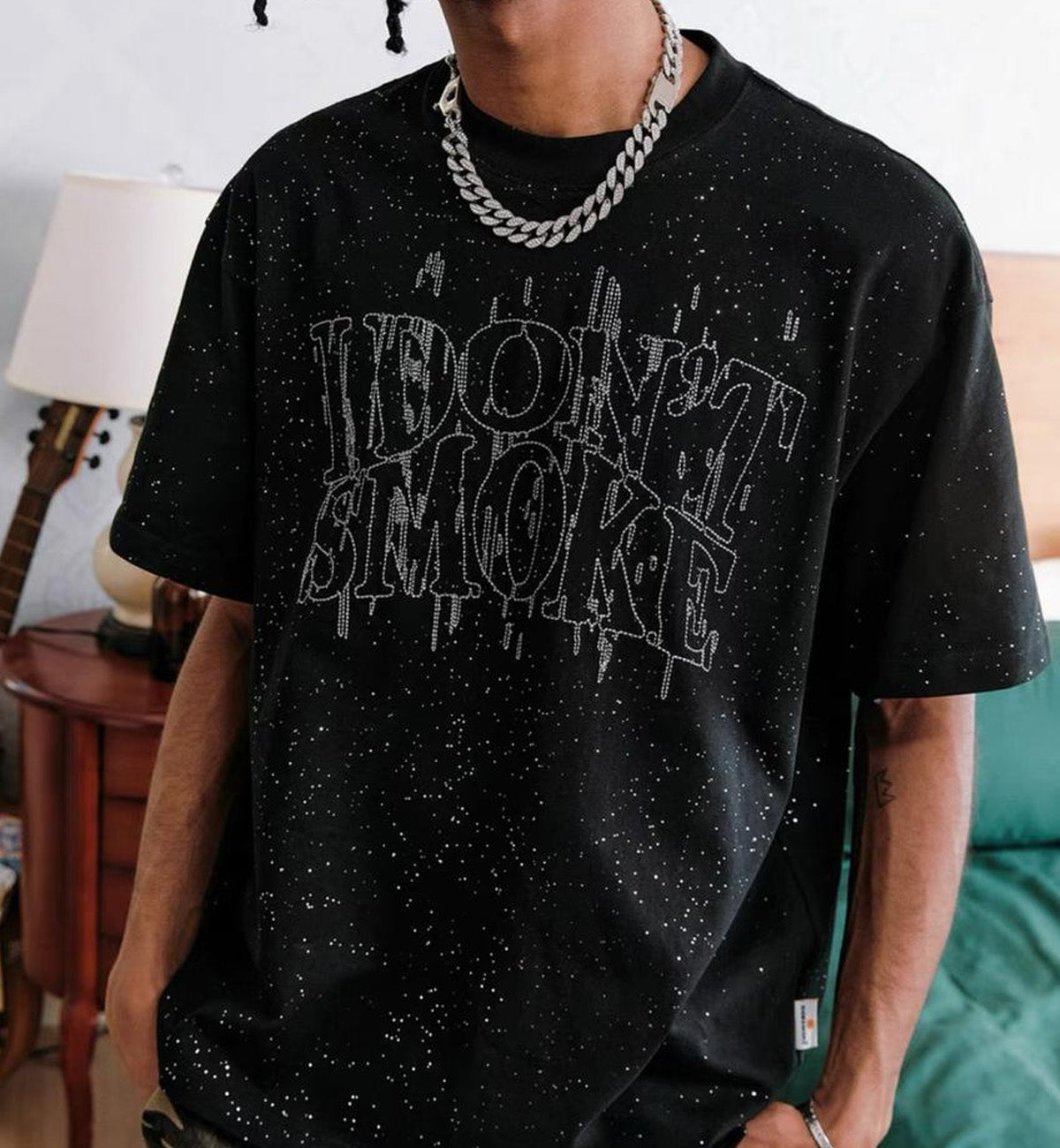 I Don't Smoke Rhinestone Logo Star Dust T-Shirt (Black)