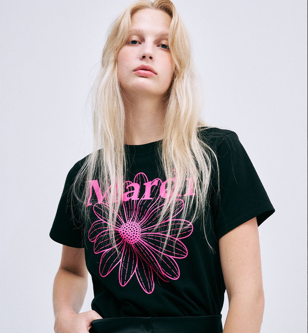 Mardi Mercredi Flower Mardi T-Shirt (Black Fuchsia)