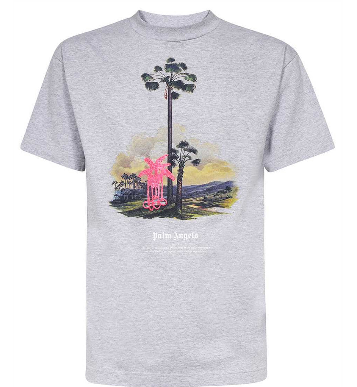 Palm Angels Grey 2023 Crew-Neck T-Shirt