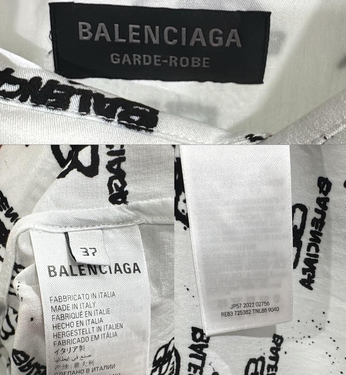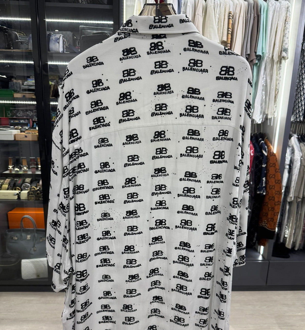 [Pre-used] Balenciaga Shirt Viscose White with Full Black Logo Print