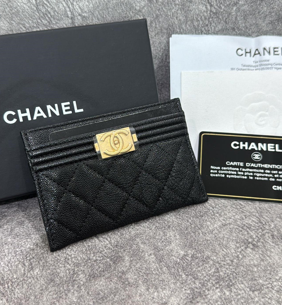 [Pre-Used] Chanel Cardholder Caviar Black Boy