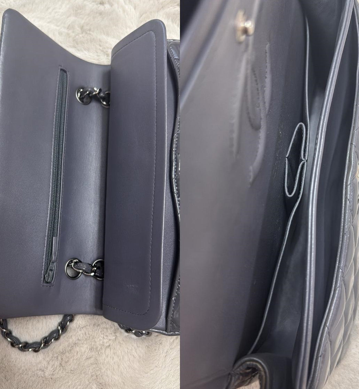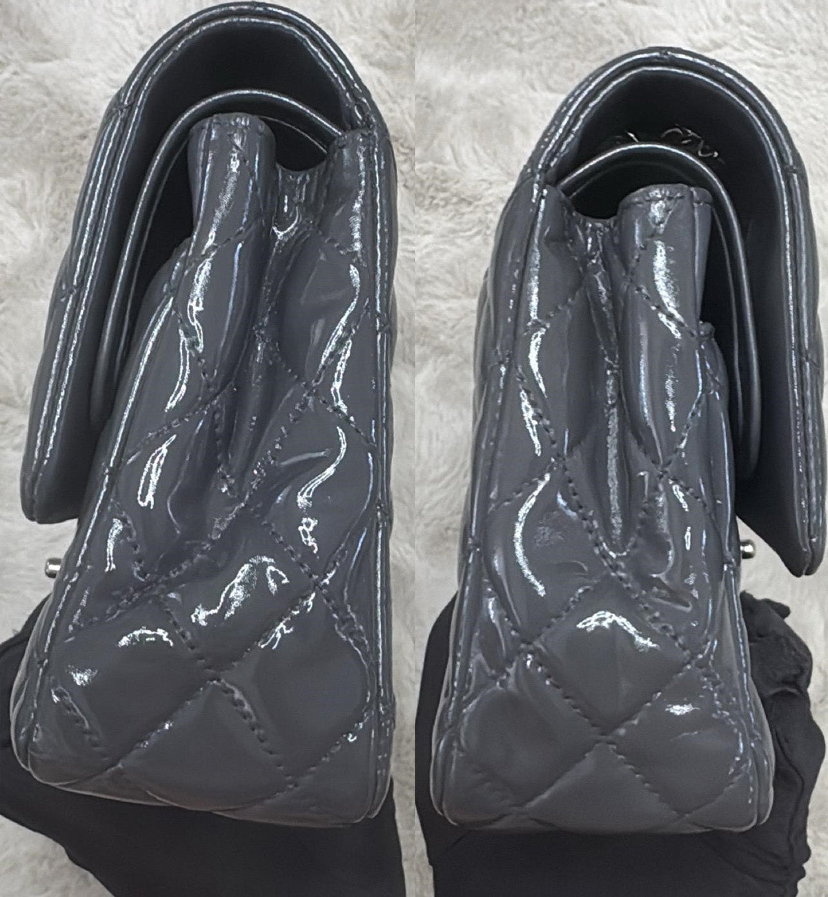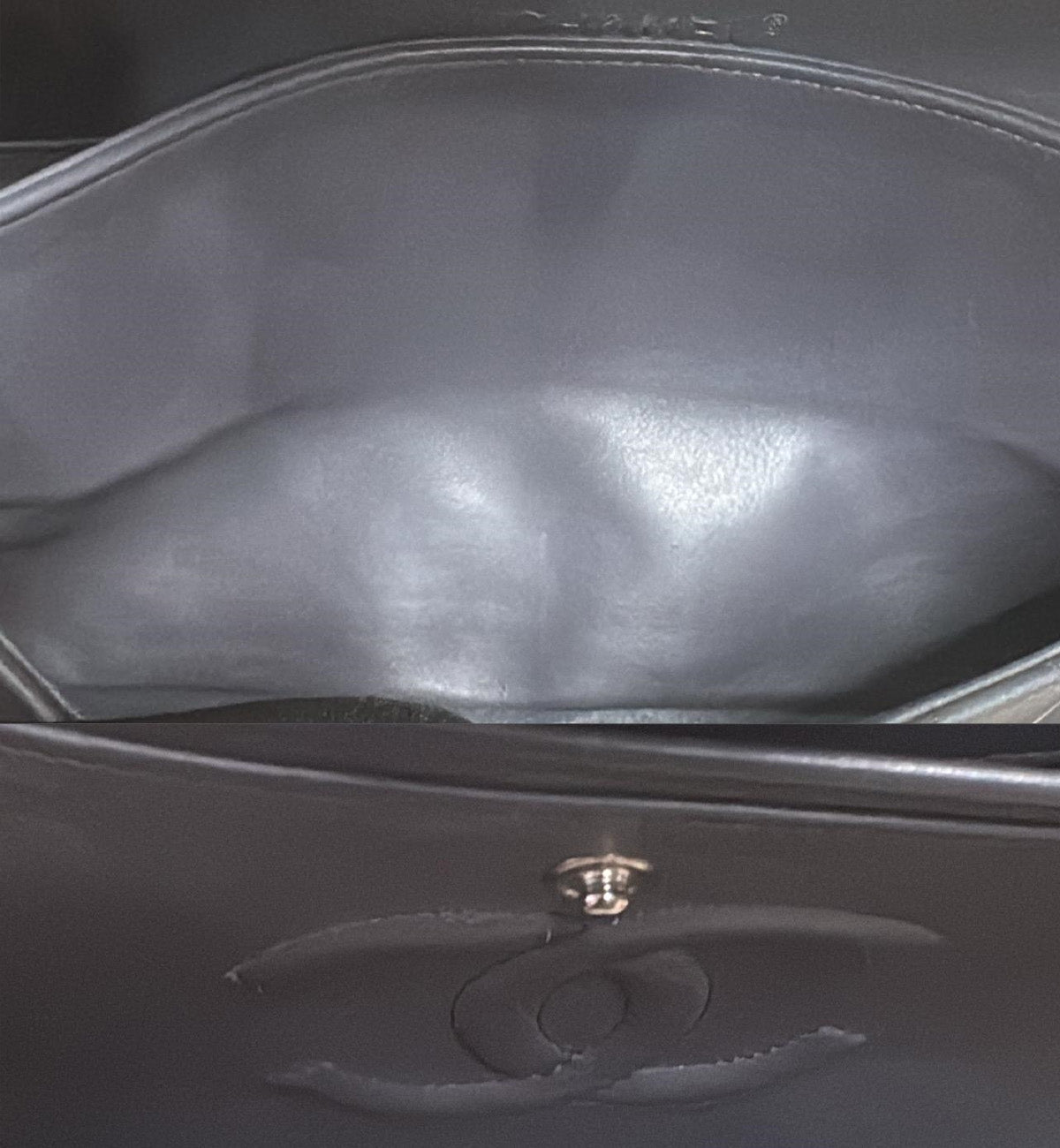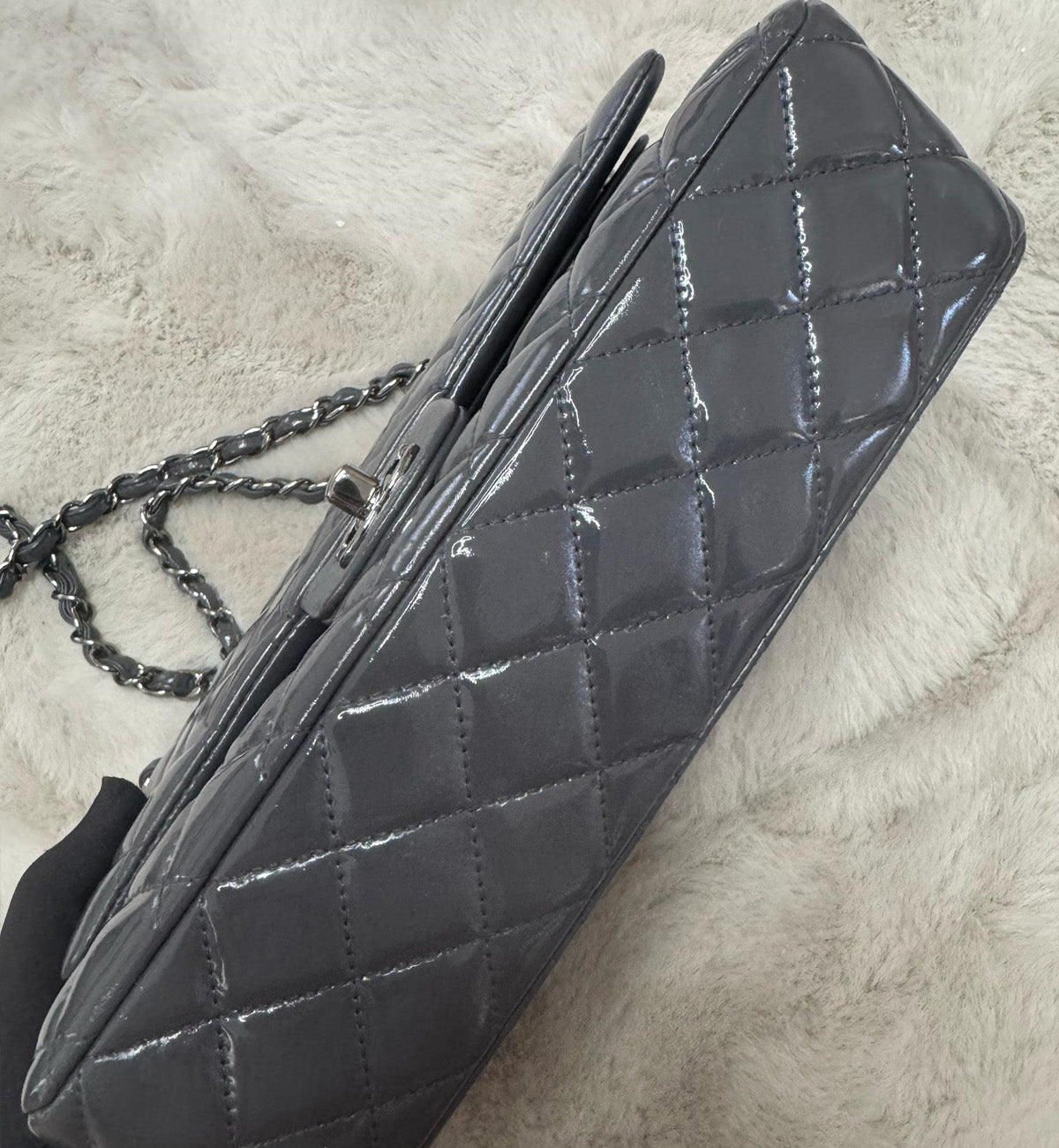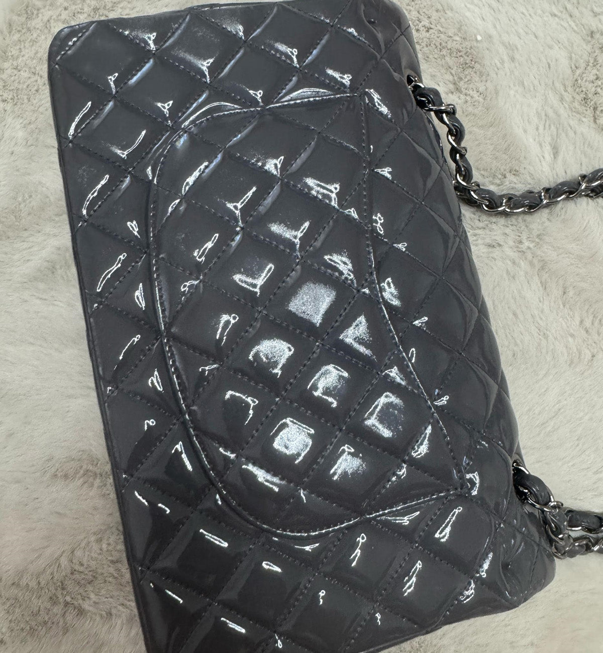 Chanel Double Flap Grey Patent Medium