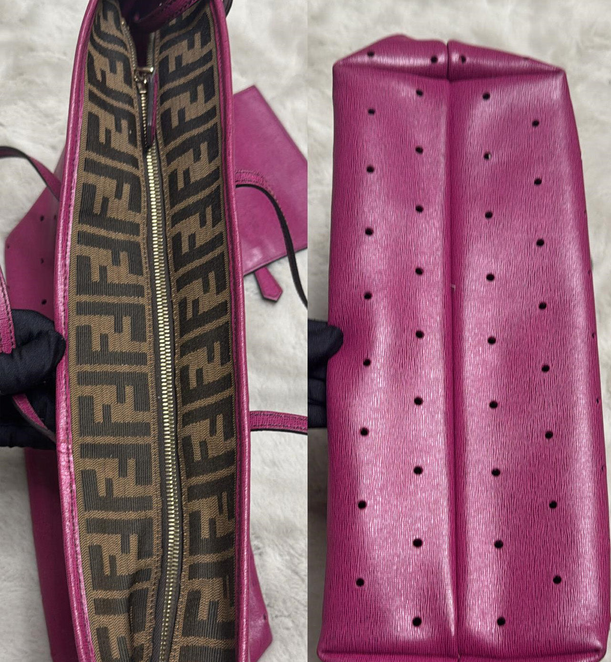 [Pre-used] Fendi Tote Bag Perforated Pink Zukka