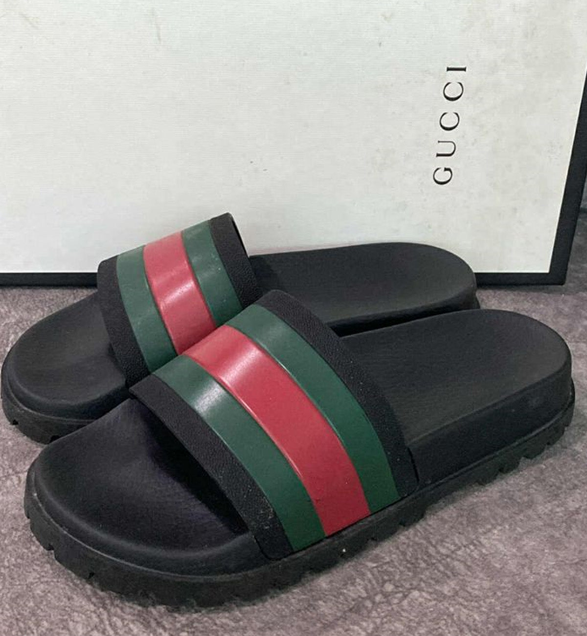 [Pre-Used] Gucci Slides Black Web with Platform