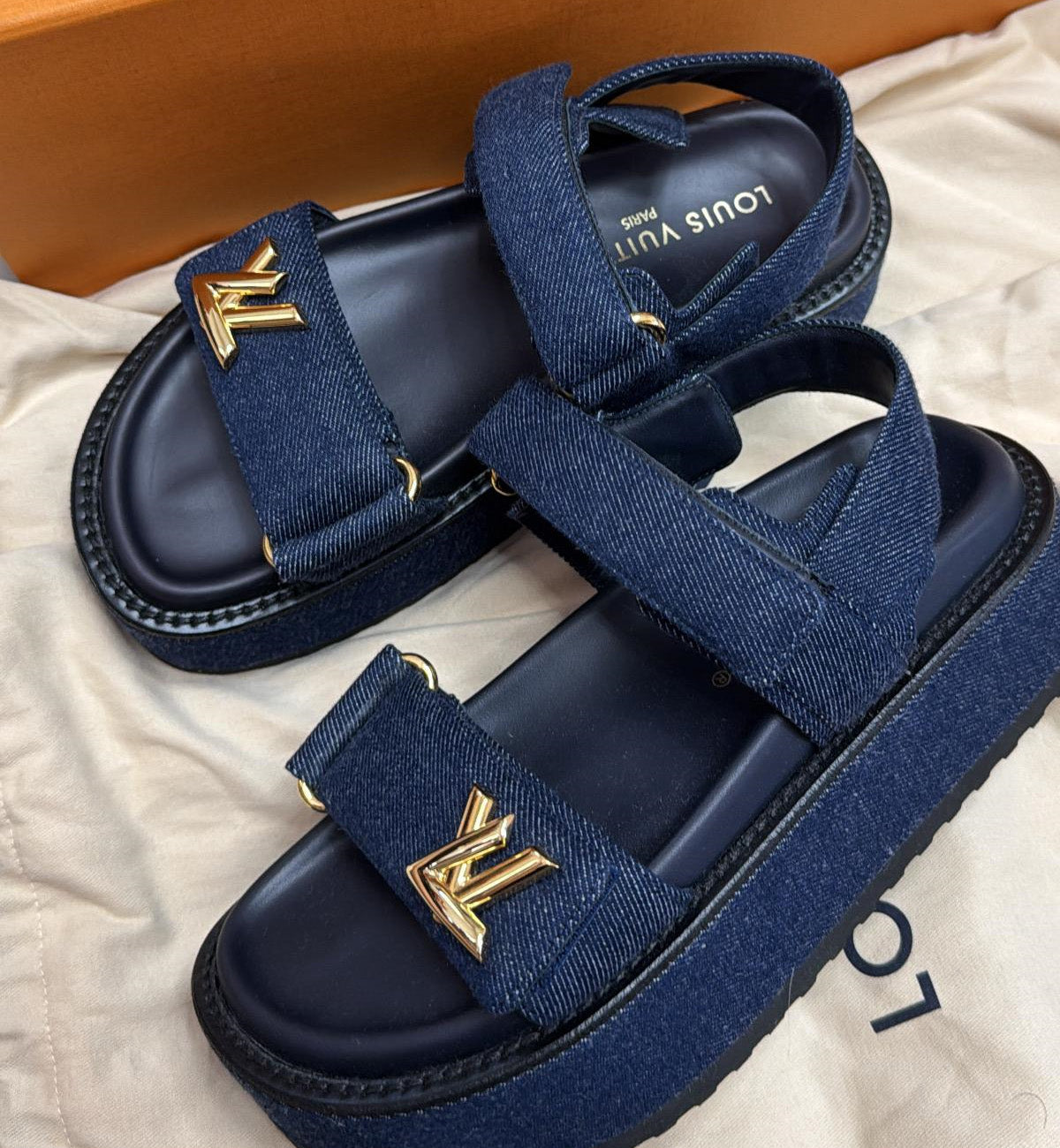 [Pre-Used] LV Sunset Sandals Denim Blue Platform