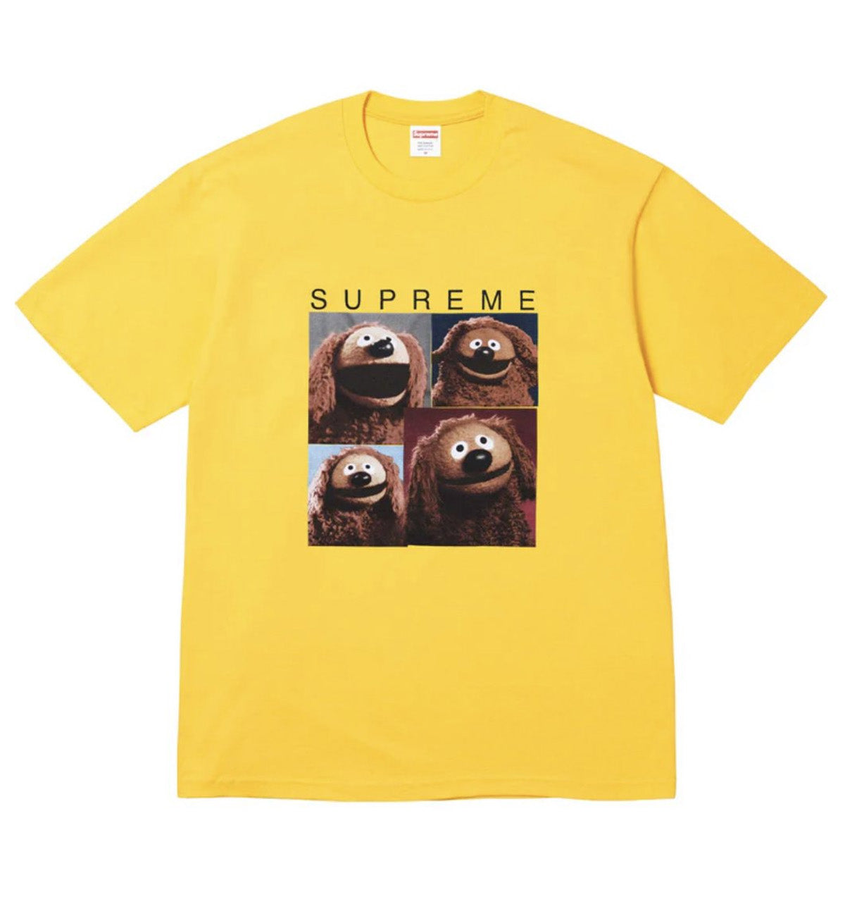 The Supreme Rowlf T-Shirt in Yellow pays homage to the beloved Muppet character Rowlf, bringing together the iconic streetwear brand Supreme with the nostalgic charm of Jim Henson's creations. Crafted with attention to detail, this t-shirt features a vibrant yellow hue that instantly catches the eye.
