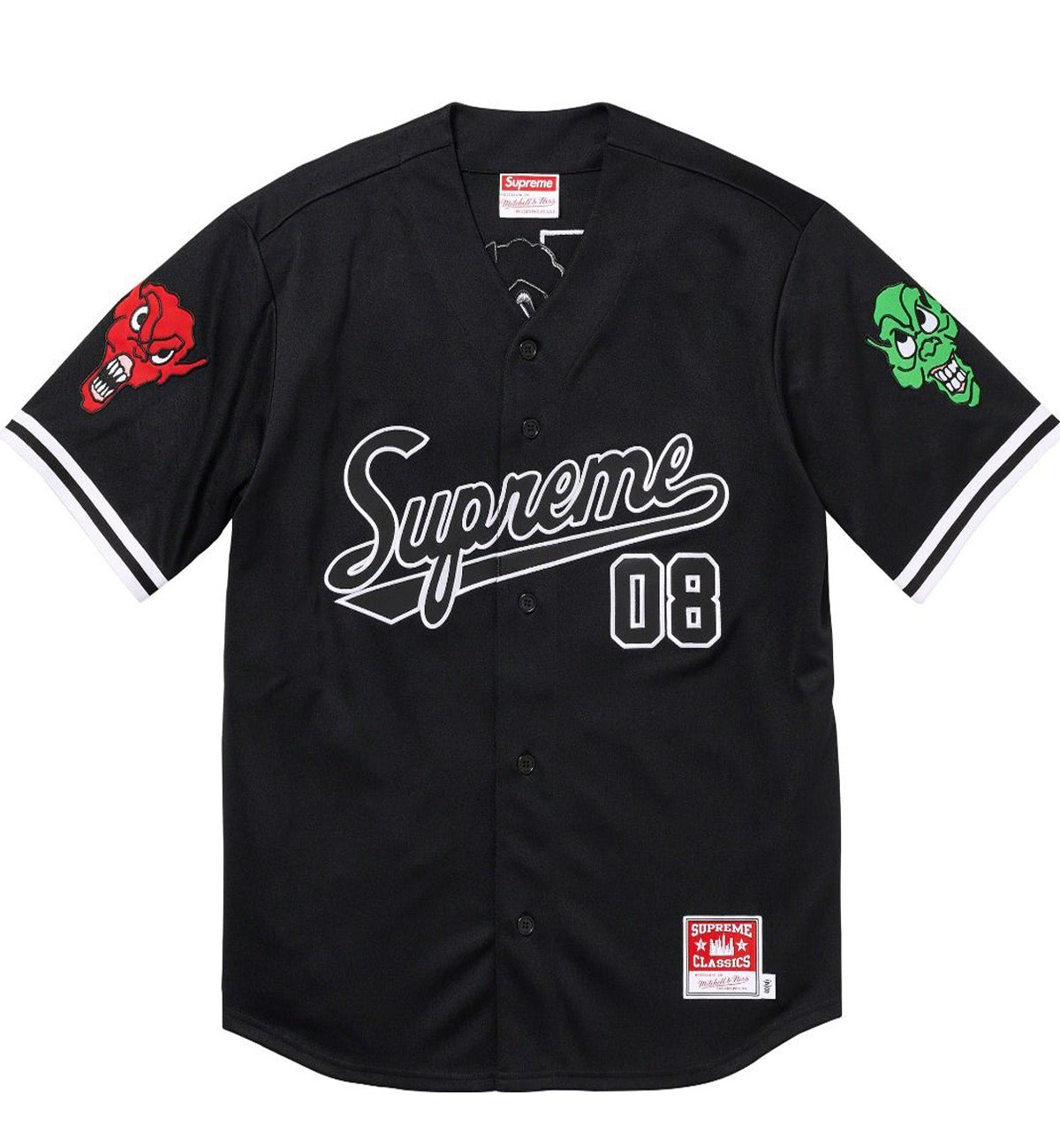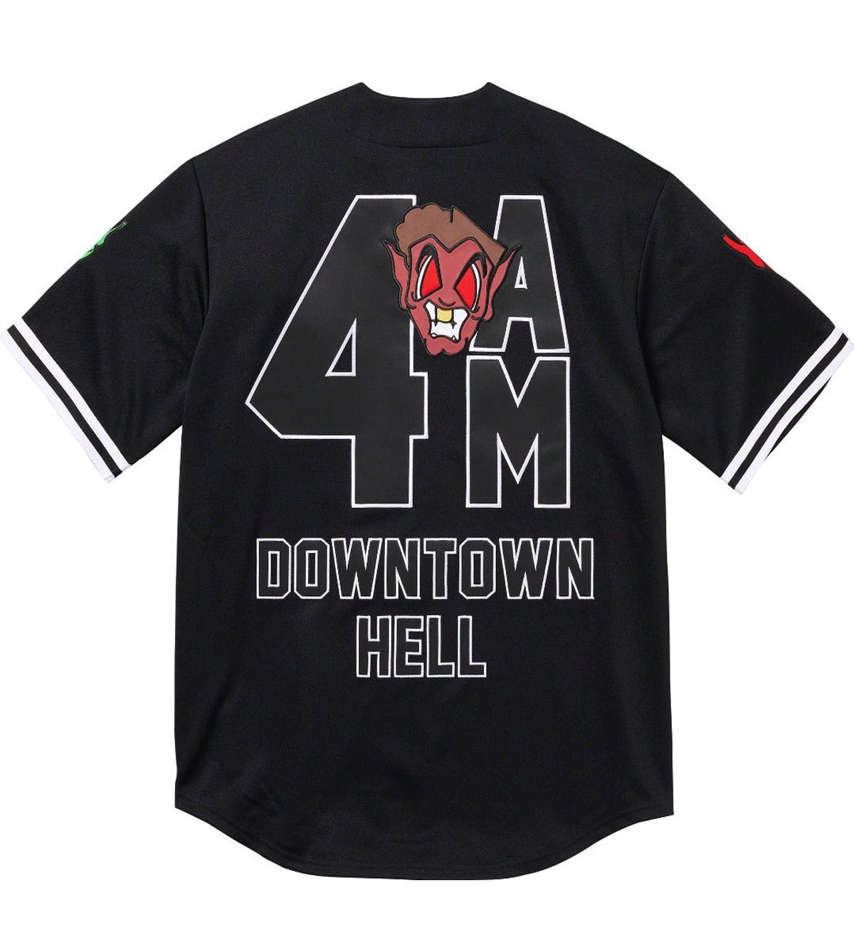 Supreme x Mitchell & Ness Collaboration FW23 DOWNTOWN HELL BASEBALL JERSEY (Black)