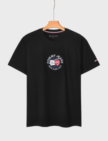 This Tommy Hilfiger Jeans T-shirt features a sleek black color that adds a touch of sophistication to your outfit. The iconic Tommy Hilfiger logo prominently displayed on the chest showcases your affinity for quality and timeless fashion.