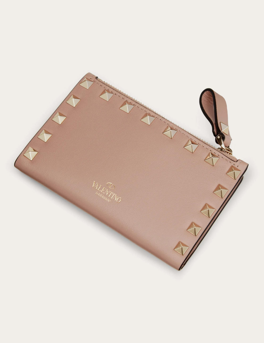 Valentino Rockstud Calfskin Coin Purse And Card Holder (Pink)