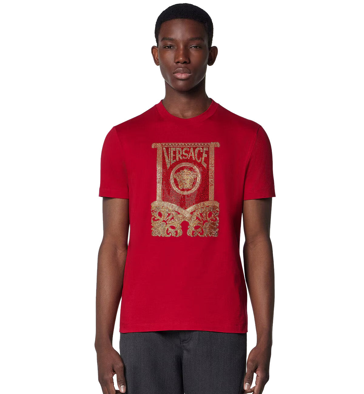 Versace Crystal Architectural Baroque T-Shirt (Red)