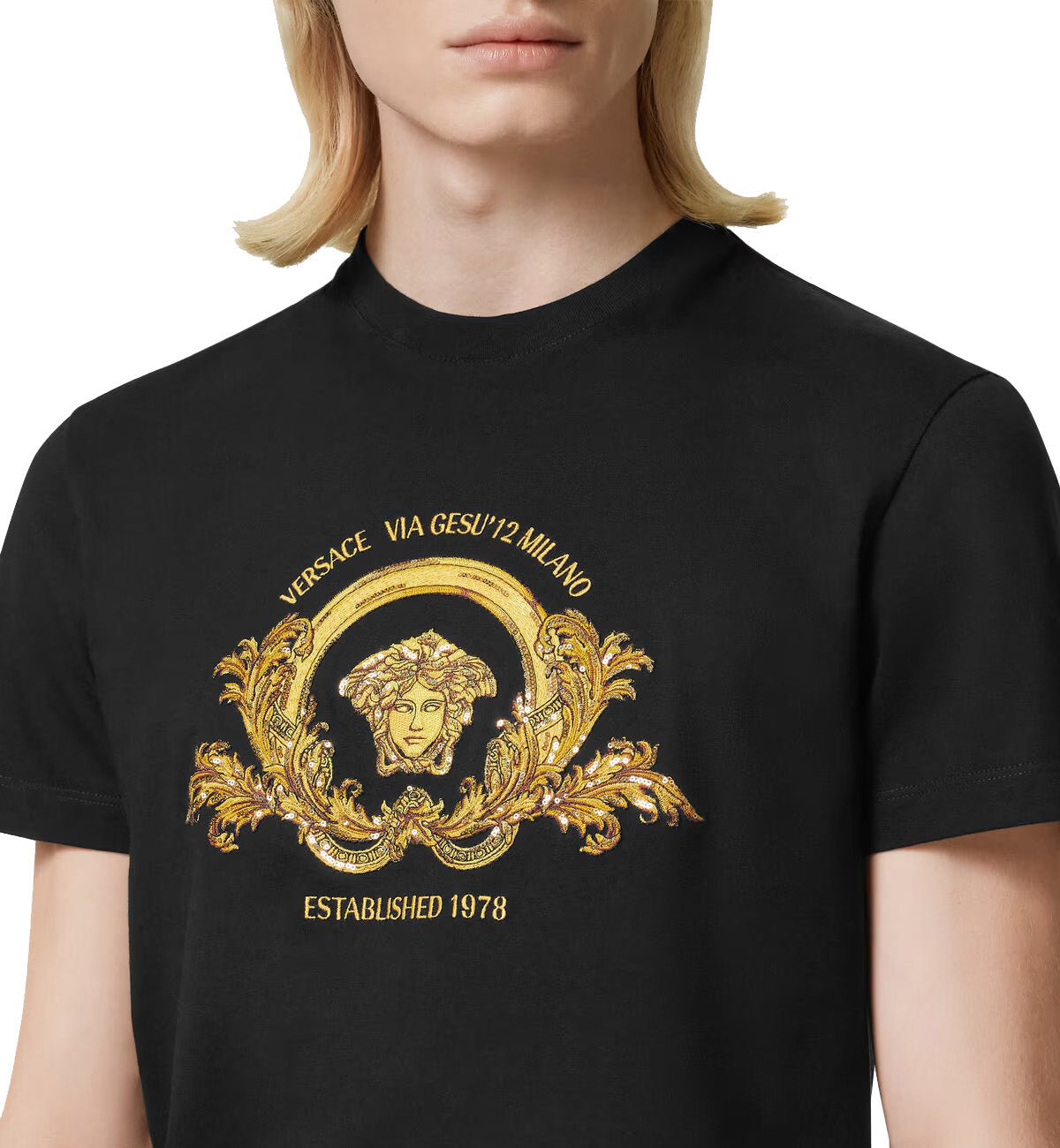 Versace Embroidered Medusa Coupe Blason T-Shirt (Black)