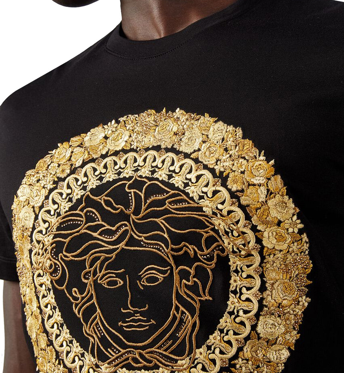 Versace Embroidered Medusa Panske Tricko T-Shirt (Black)