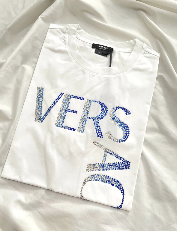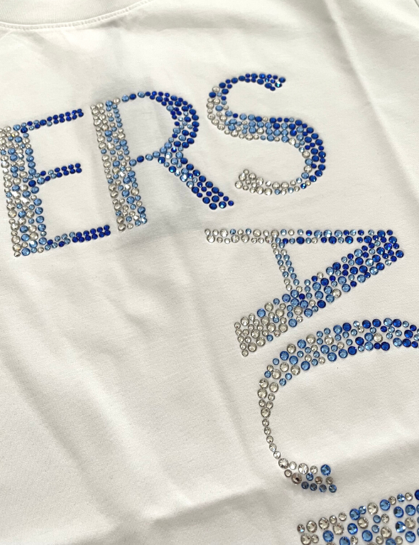 Versace Logo Blue and White Crystal T-Shirt (White)