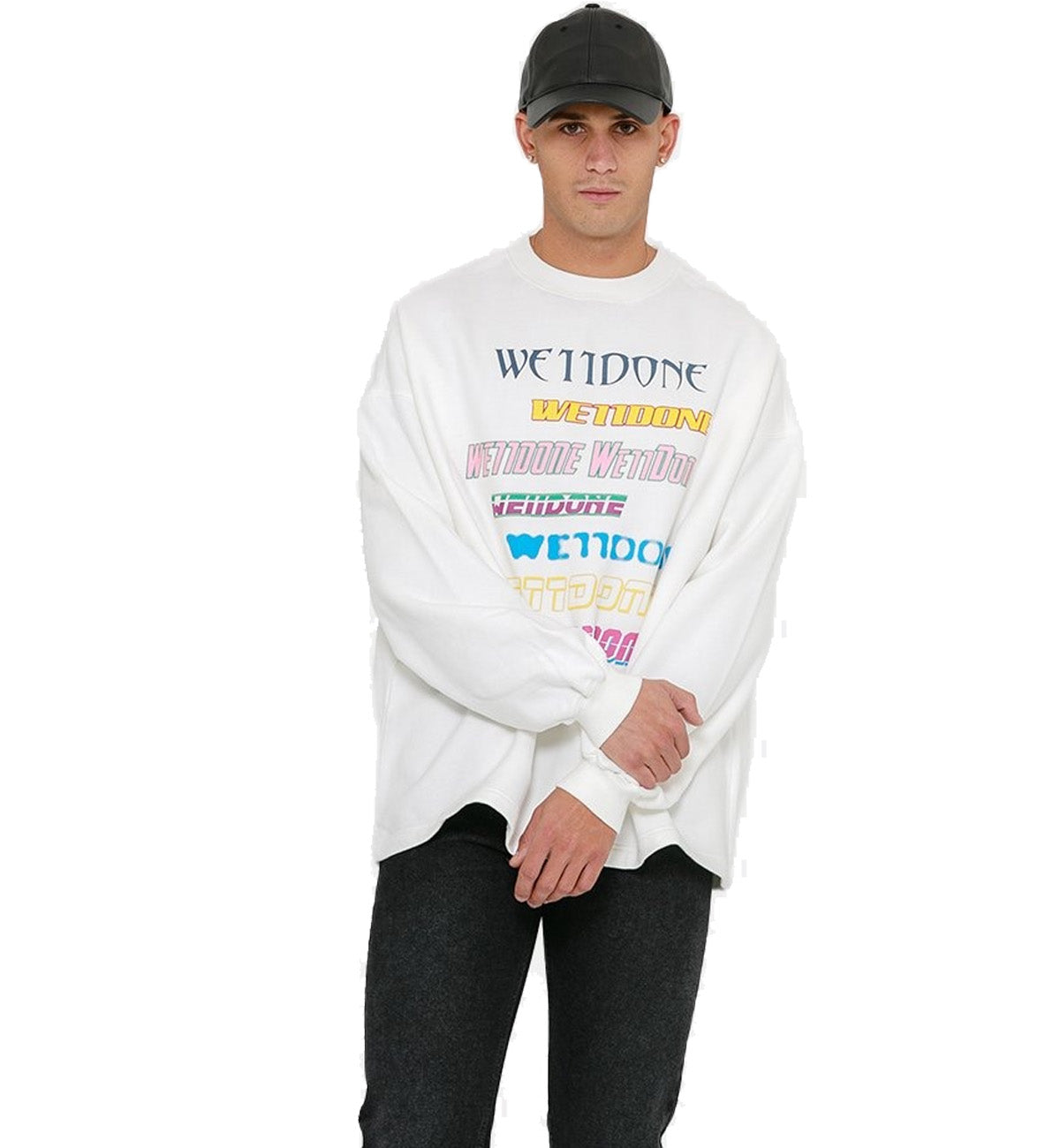 The WE11DONE Multi Logo Long Sleeve T-shirt in sleek White is the epitome of modern fashion and self-expression. This versatile long-sleeve tee embodies the brand's commitment to innovative design and showcases a captivating array of logos that make a bold statement.