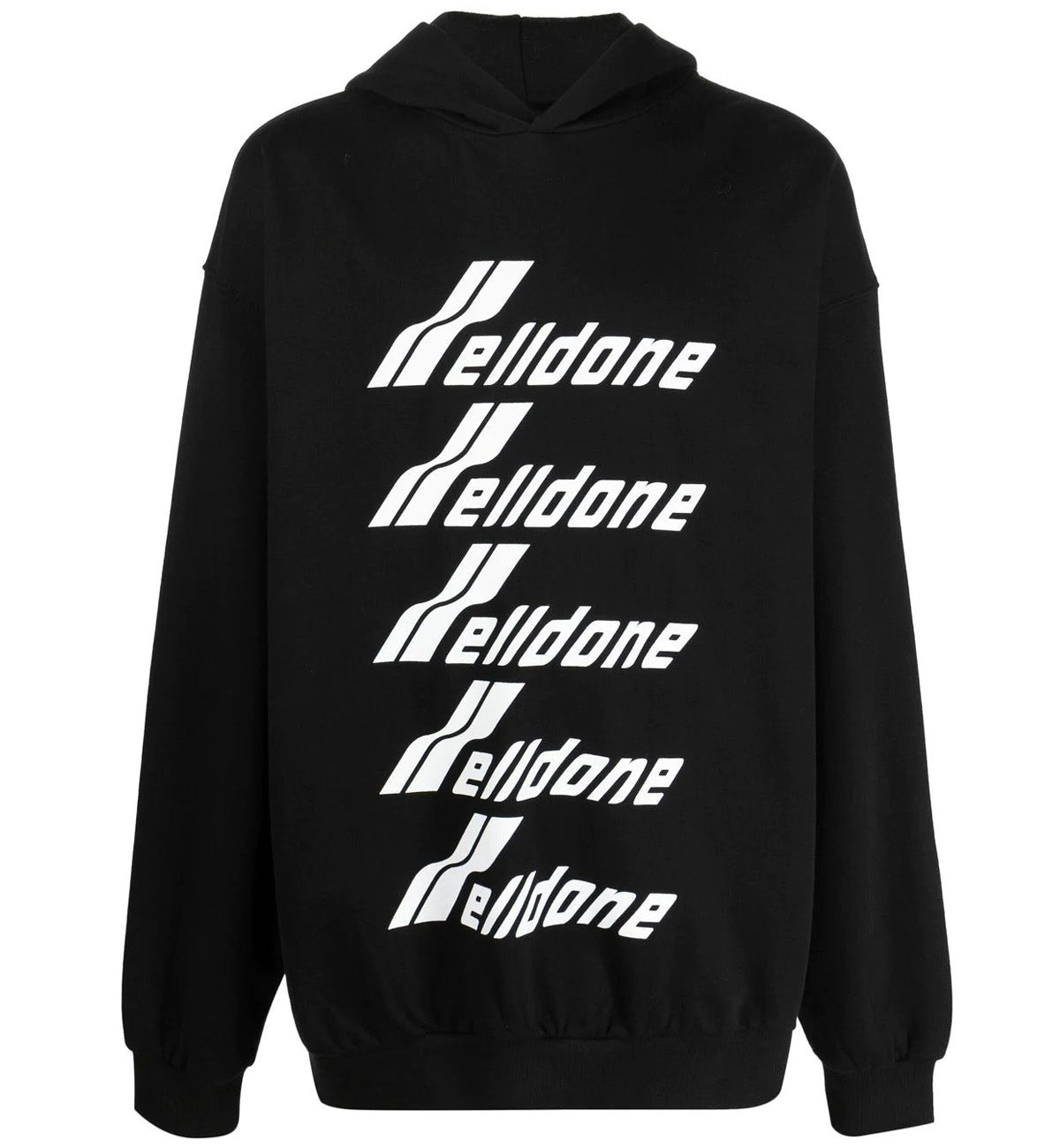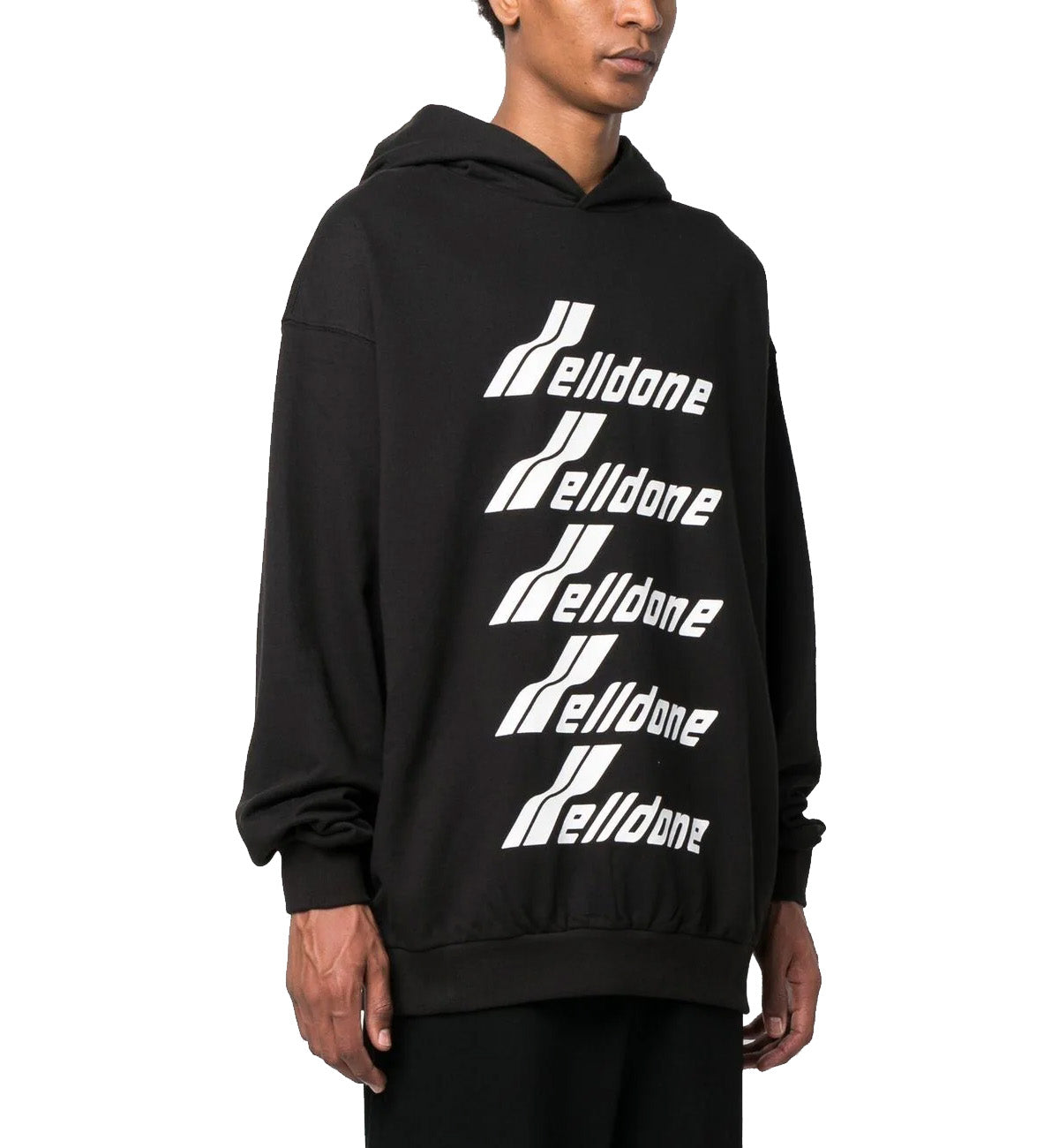WE11DONE Multiple Front Logo Cotton Hoodie (Black)